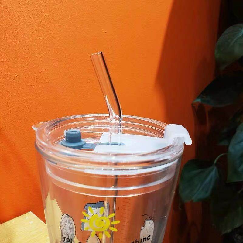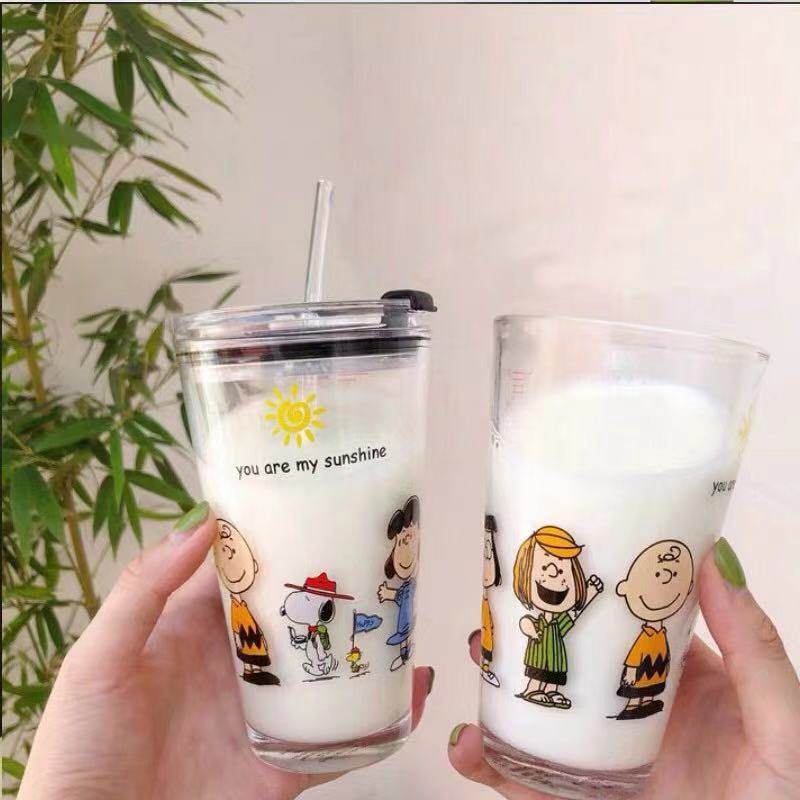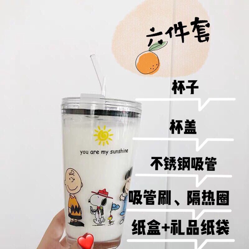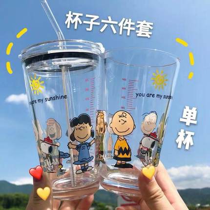 ins风史努比水杯网红仙女刻度杯子抖音同款吸管冲奶随手杯玻璃杯