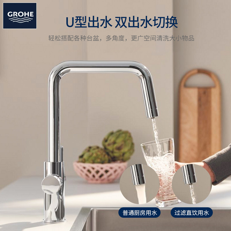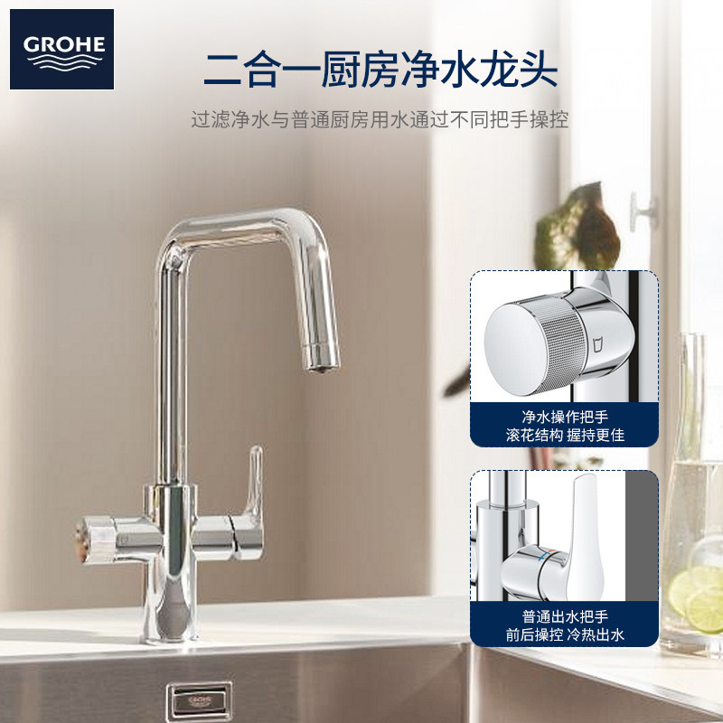 高仪(GROHE)进口厨房净水器可抽拉冷热二合一水槽龙头30583000