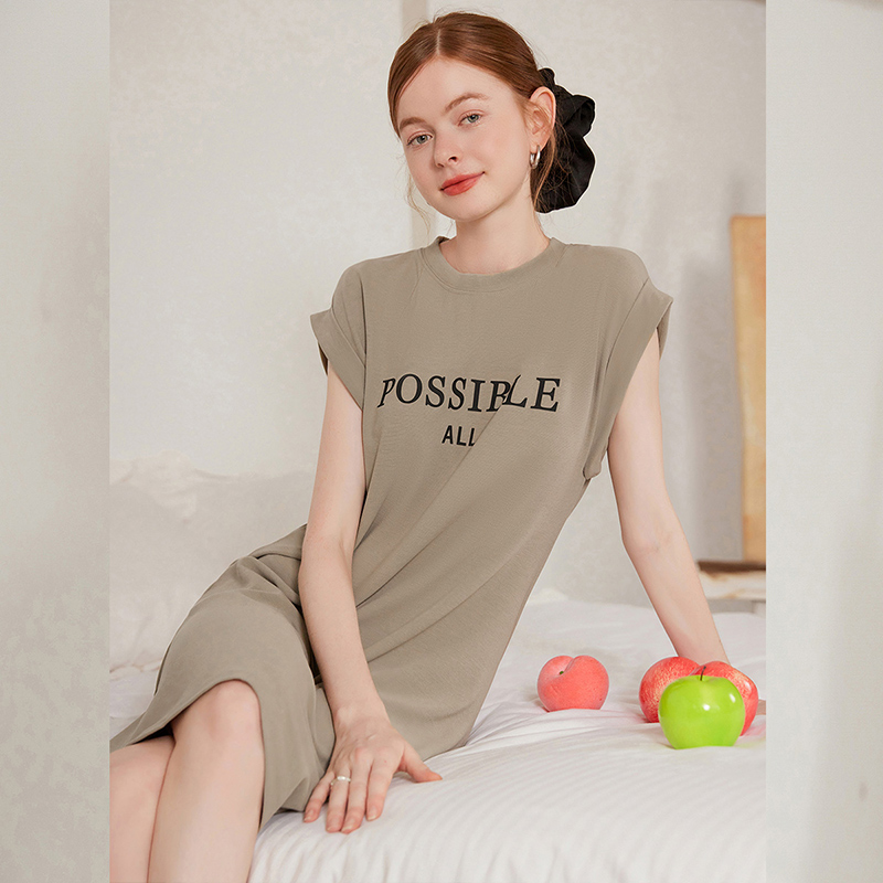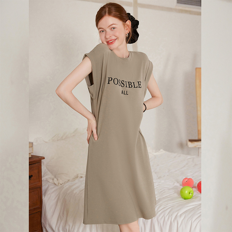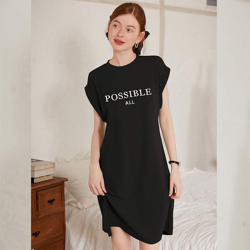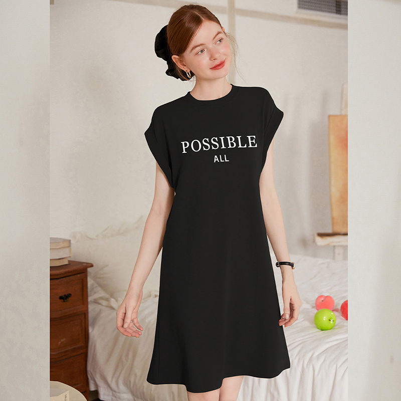 白鹿语休闲印花连肩袖T恤裙