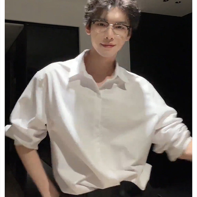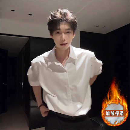 那不勒斯白色衬衫男款秋季高级感内搭轻熟风痞帅长袖加绒衬衣外套