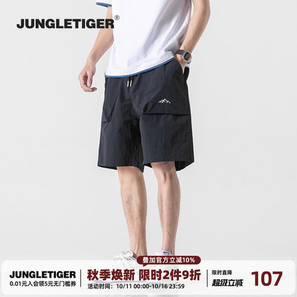 丛林老虎日系户外速干工装短裤男夏季薄款运动宽松直筒抽绳五分裤