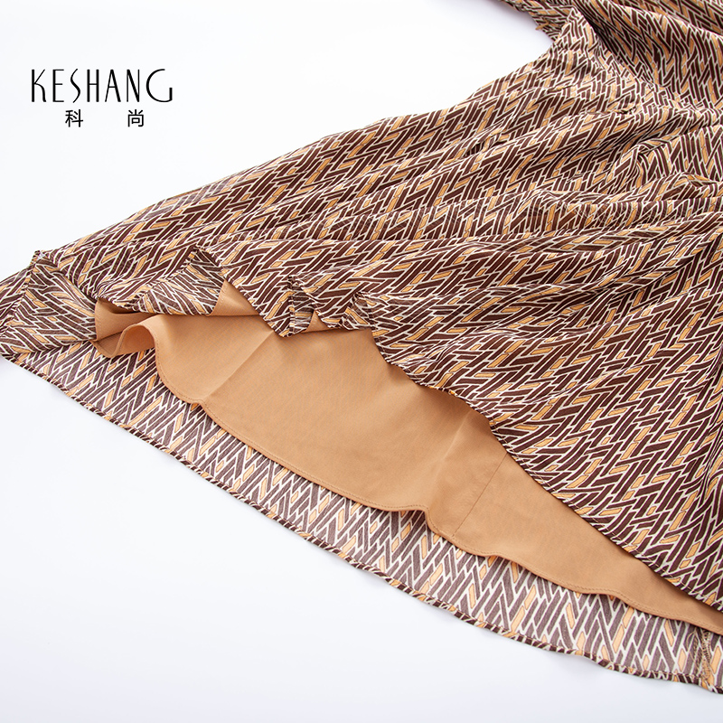 科尚翻领复古印花连衣裙女2025春季新款超好看中长气质收腰长裙子