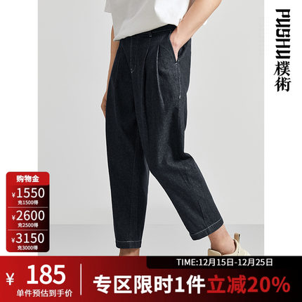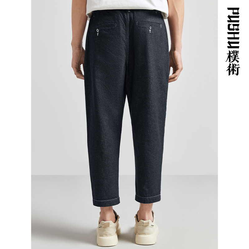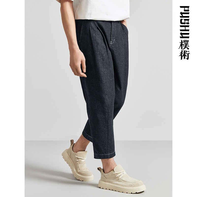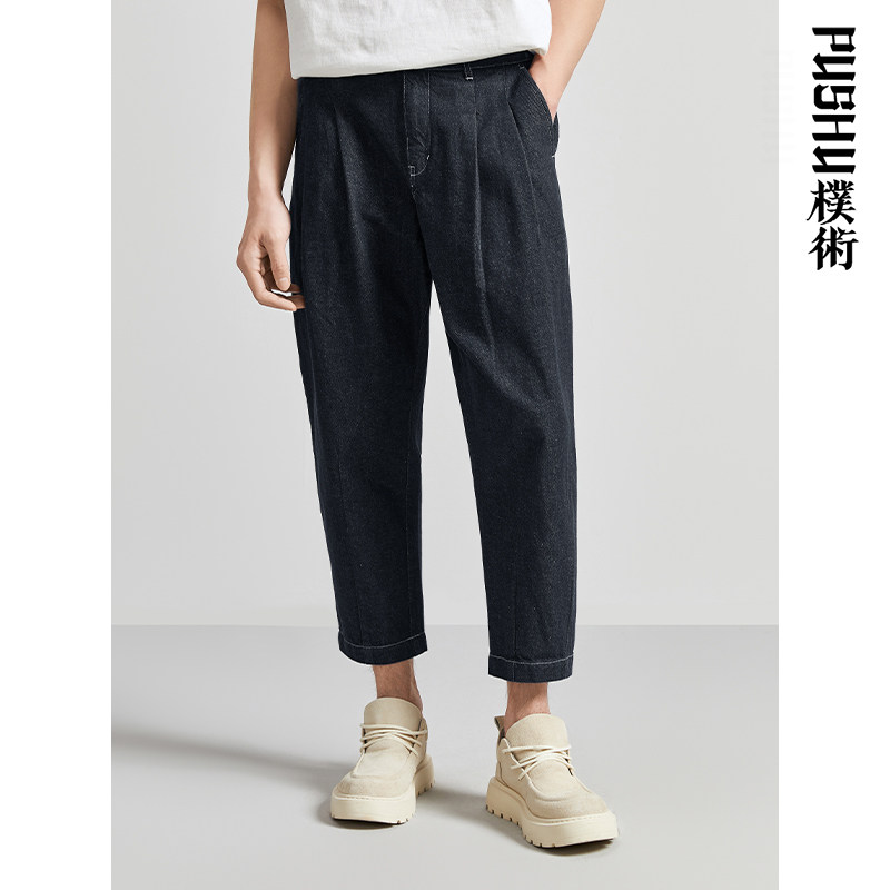朴术男装春秋季新款藏蓝色锥形牛仔九分裤日系复古百搭薄款休闲裤