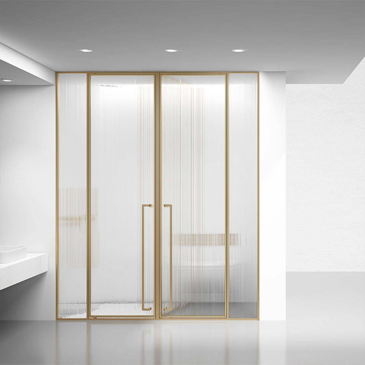 朗司淋浴房简约金色钢化玻璃平开门卫生间浴室淋浴间