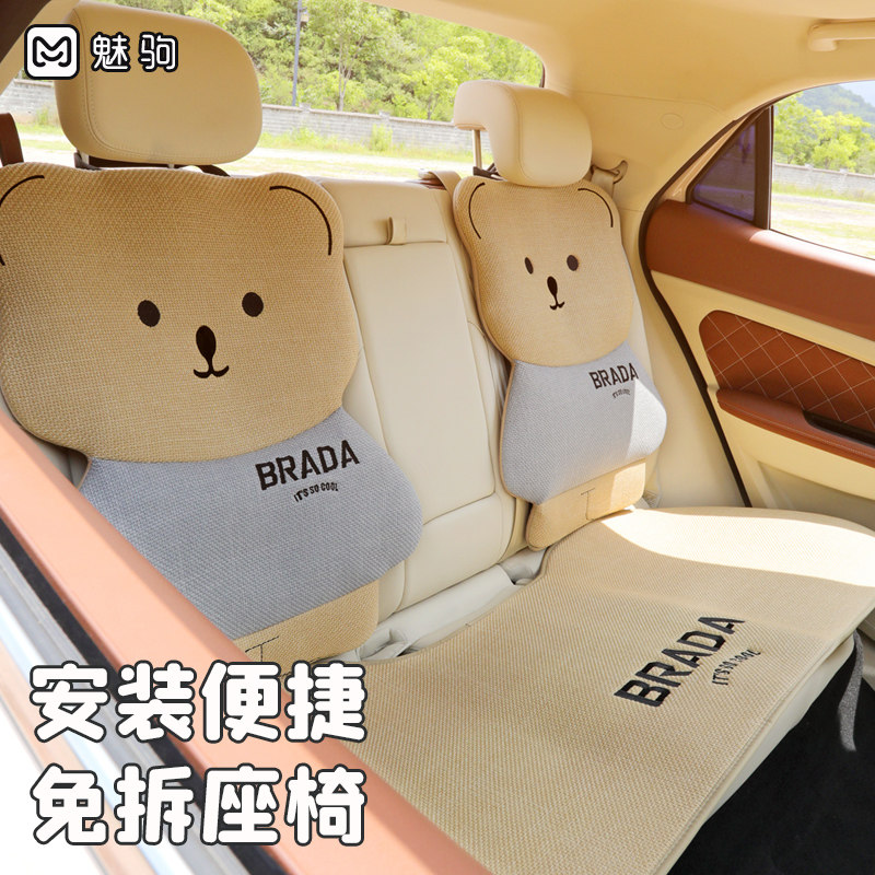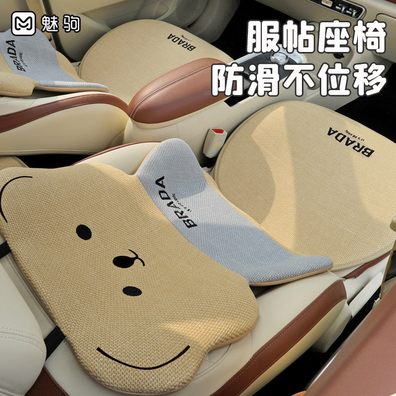 汽车坐垫四季通用亚麻卡通座垫座套半包后排高级可爱女士座椅套