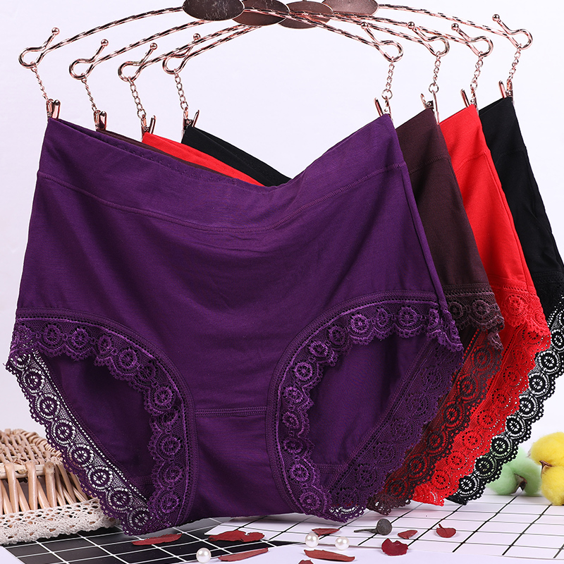 加肥大码胖mm200斤中高腰内裤女莫代尔棉无痕蕾丝性感本命年红色