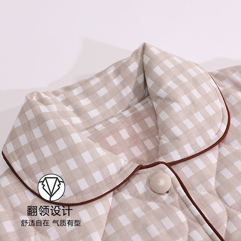 浪莎2025年新款冬季睡衣女纯棉三层夹棉袄加厚加棉保暖家居服套装