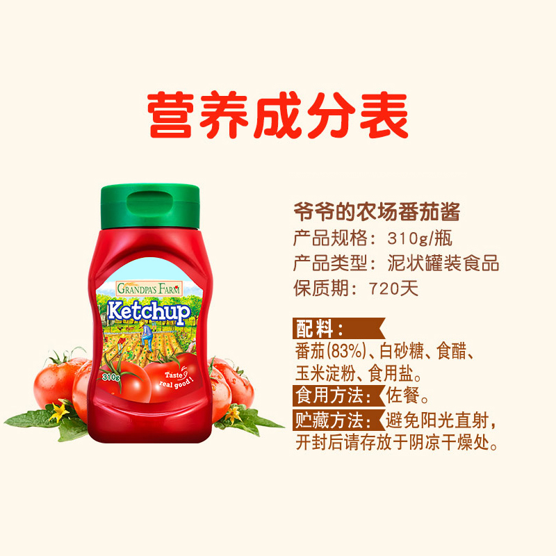 爷爷的农场低脂番茄酱调料儿童沙司汉堡意大利面酱调味品
