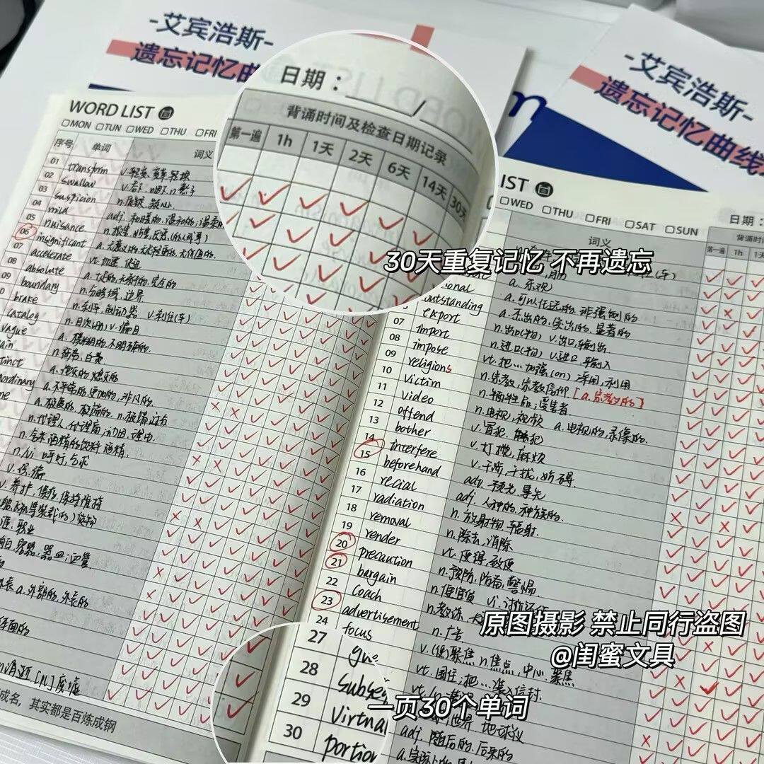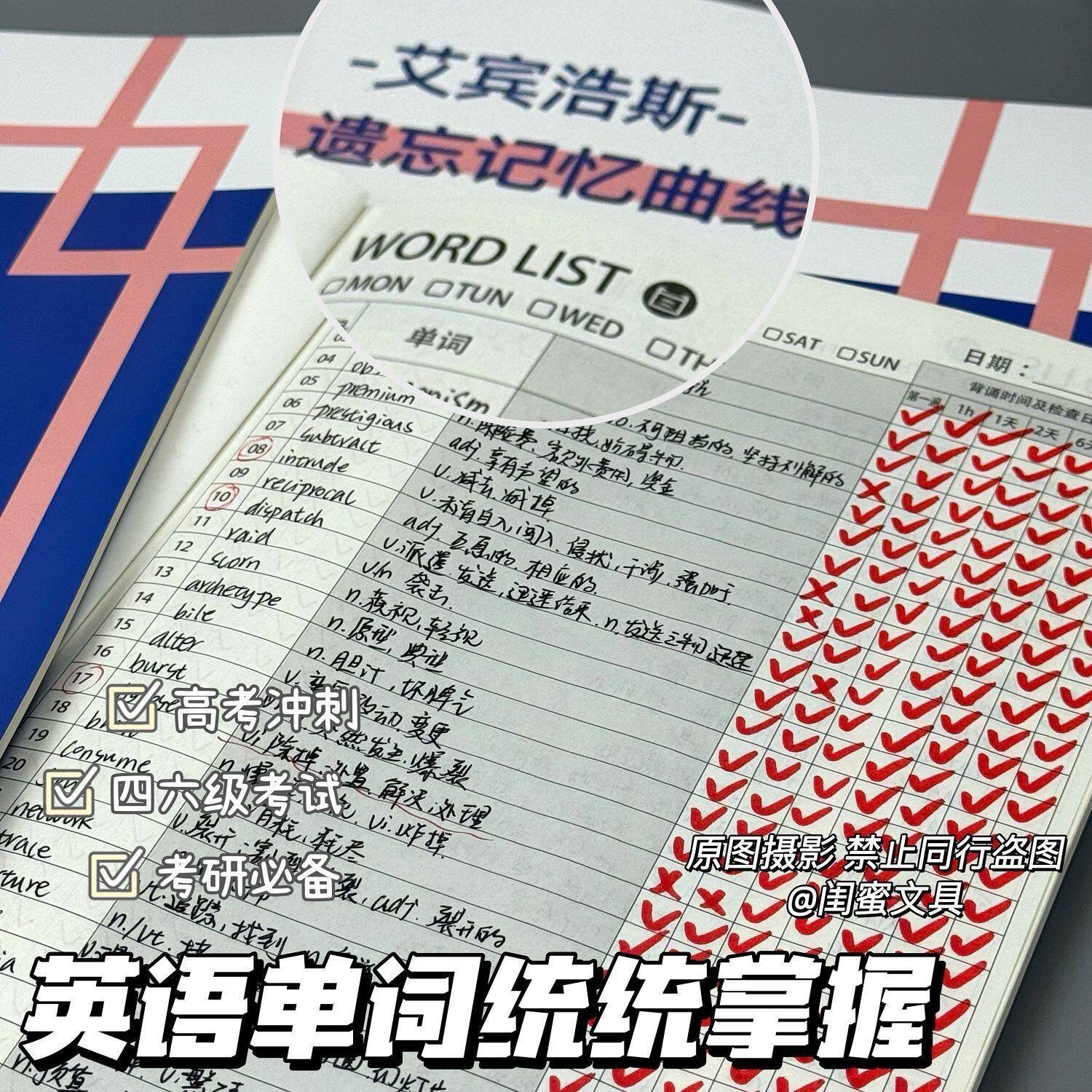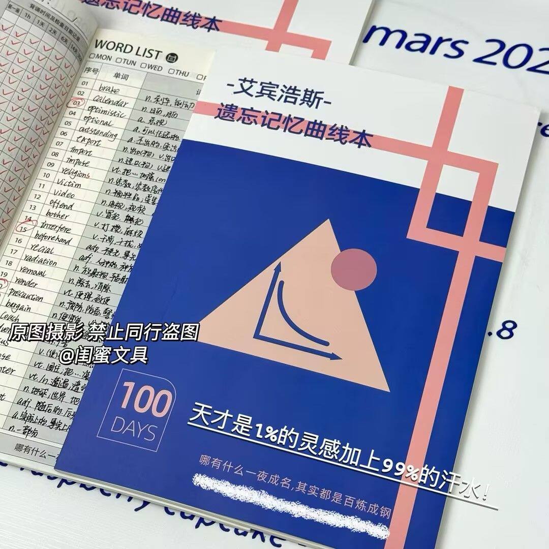 艾宾浩斯遗忘记忆曲线本考研四六级高考冲刺英语单词本学生打开记录本ins风高颜值考研复习日计划本效率本