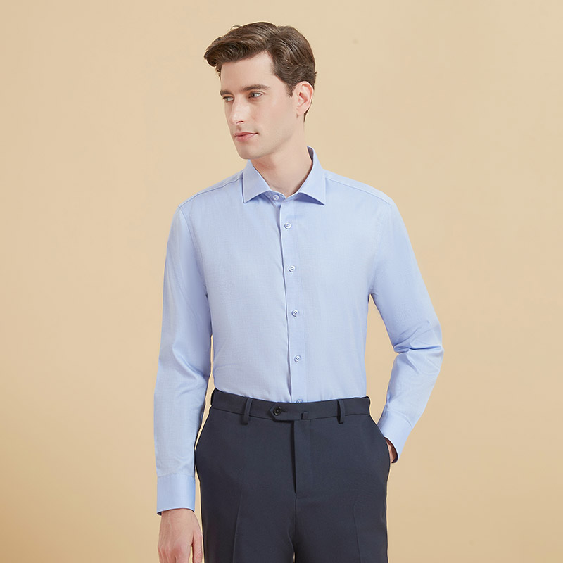 乔治白秋季男士商务免烫衬衫温莎领纯棉修身长袖衬衣职业工装上衣