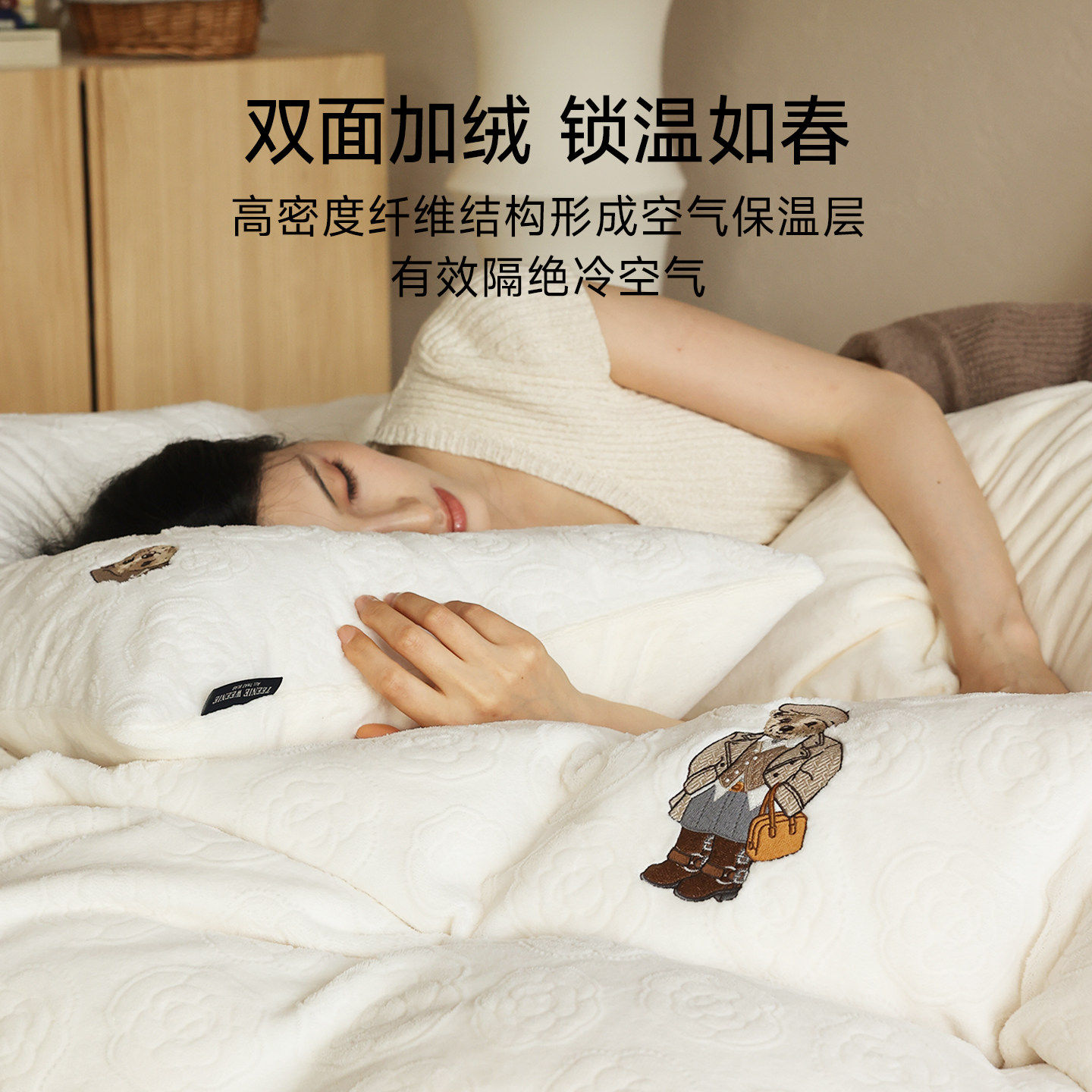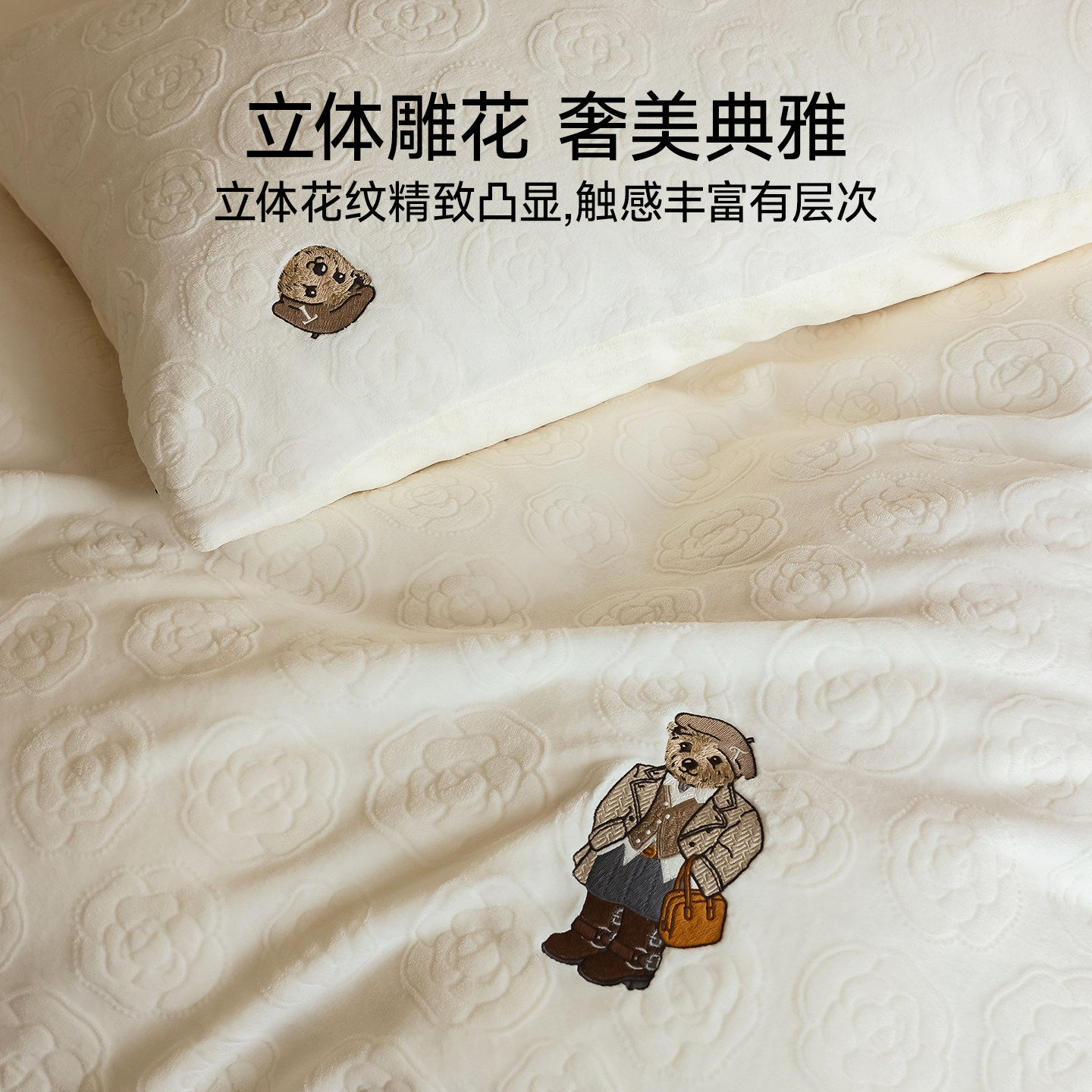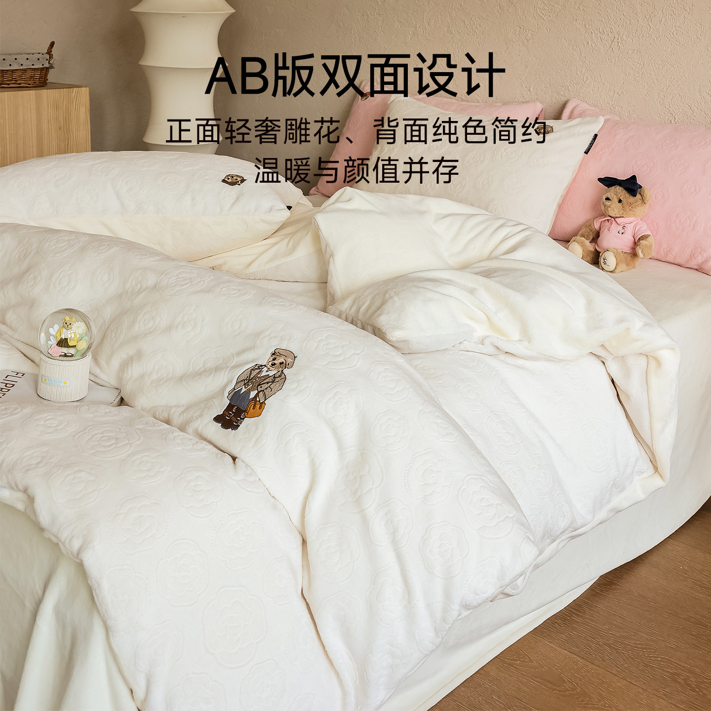 TeenieWeenie奶油小熊绣花雕花绒床上四件套牛奶绒冬季加厚珊瑚绒