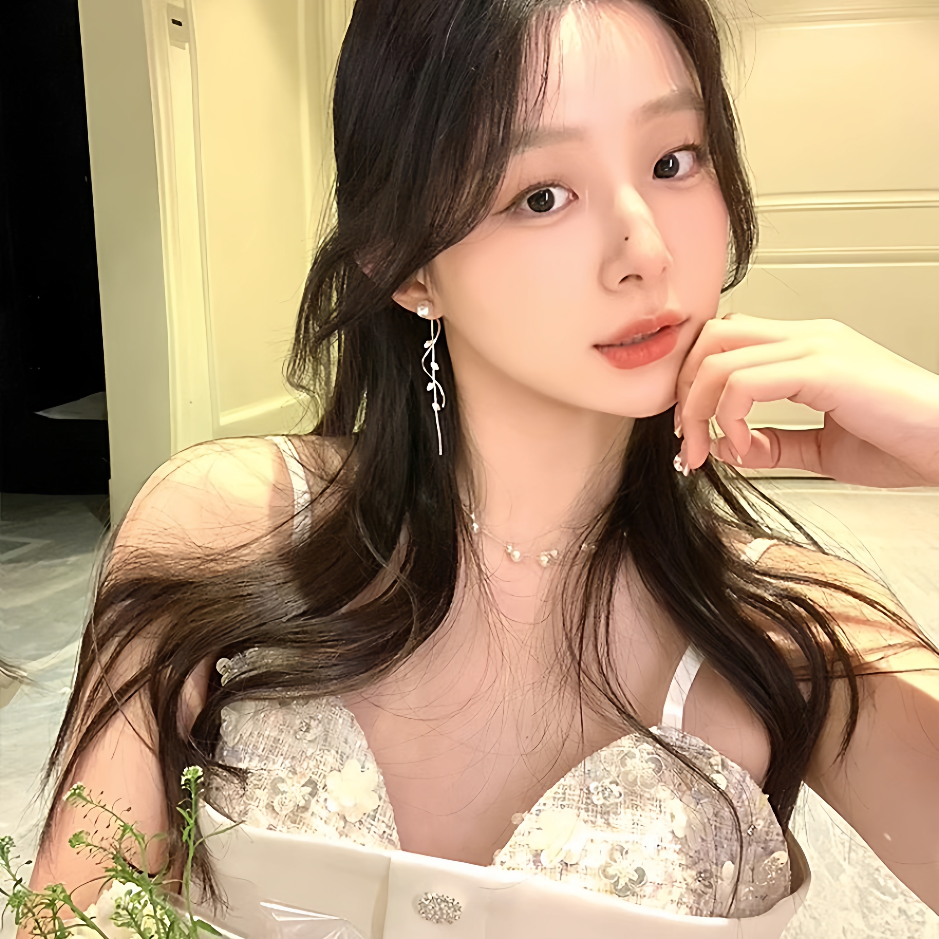 珍珠流苏耳钉气质百搭长款显脸瘦