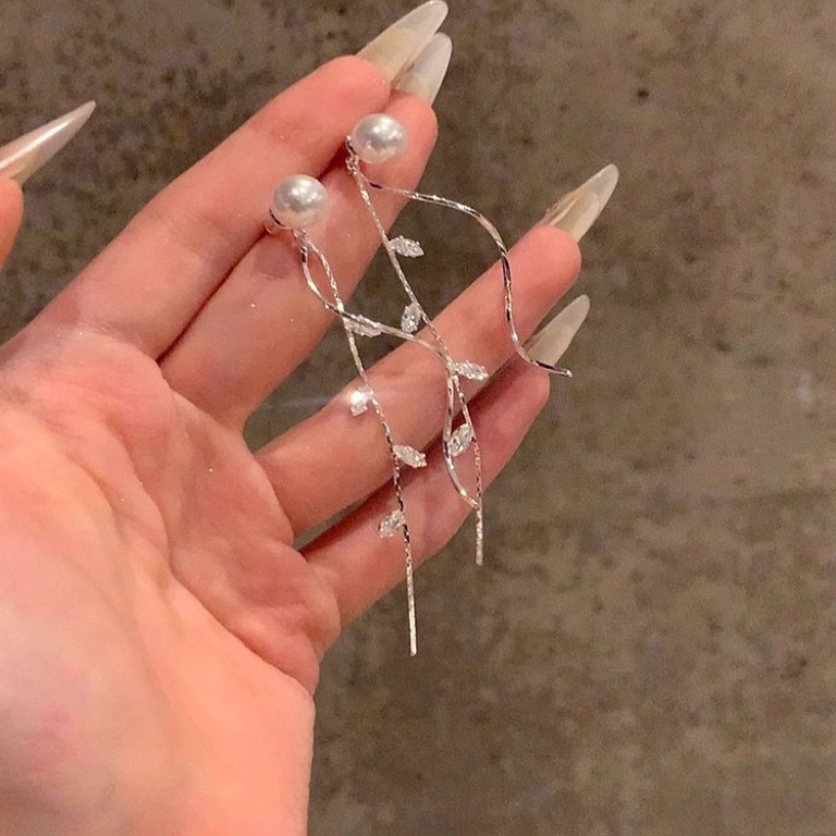 钻石花藤~超仙珍珠流苏耳钉女s925纯银针长款耳环高级感轻奢耳饰