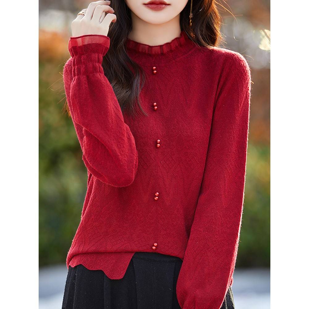 早秋蕾丝钉珠针织打底衫女2025新款春秋内搭上衣洋气大码女装毛衣