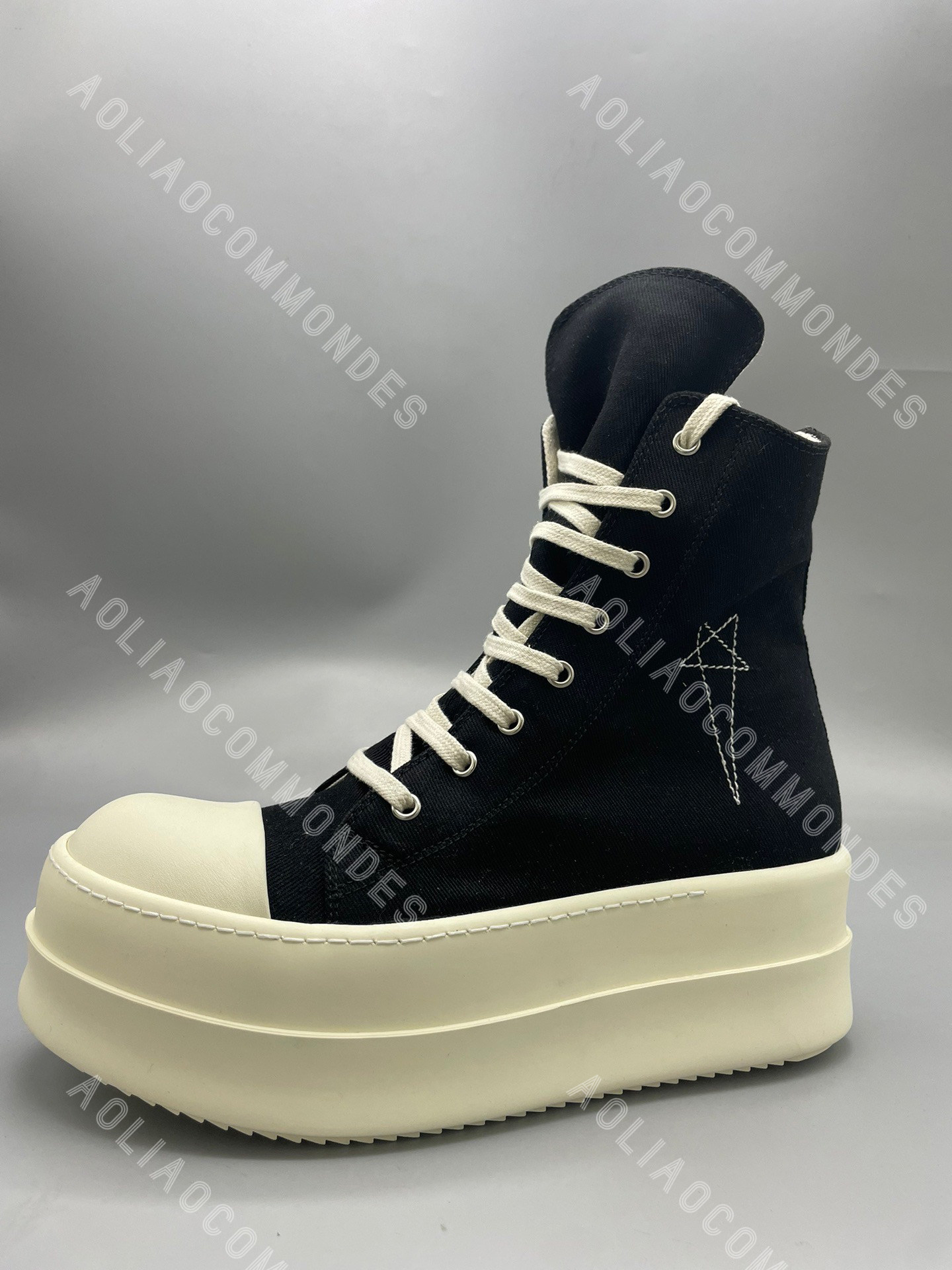 RO五芒星暗黑风斜纹布高帮鞋7CM