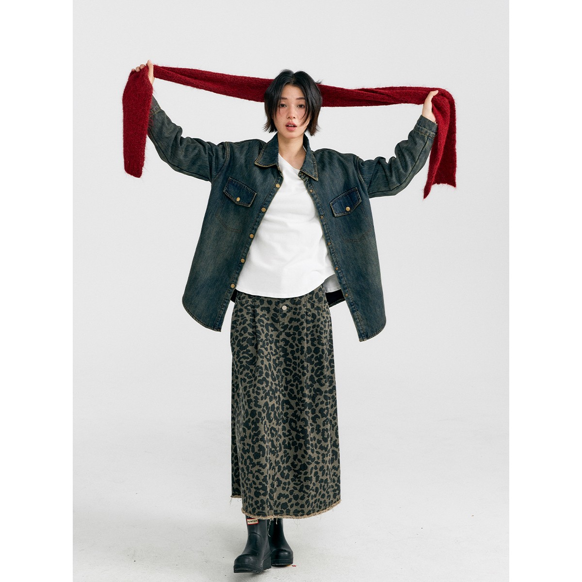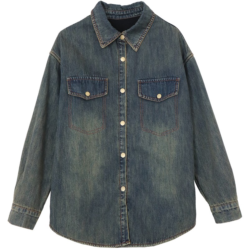 秋冬直降/秋冬中性复古做旧加绒叠穿牛仔衬衫外套5675