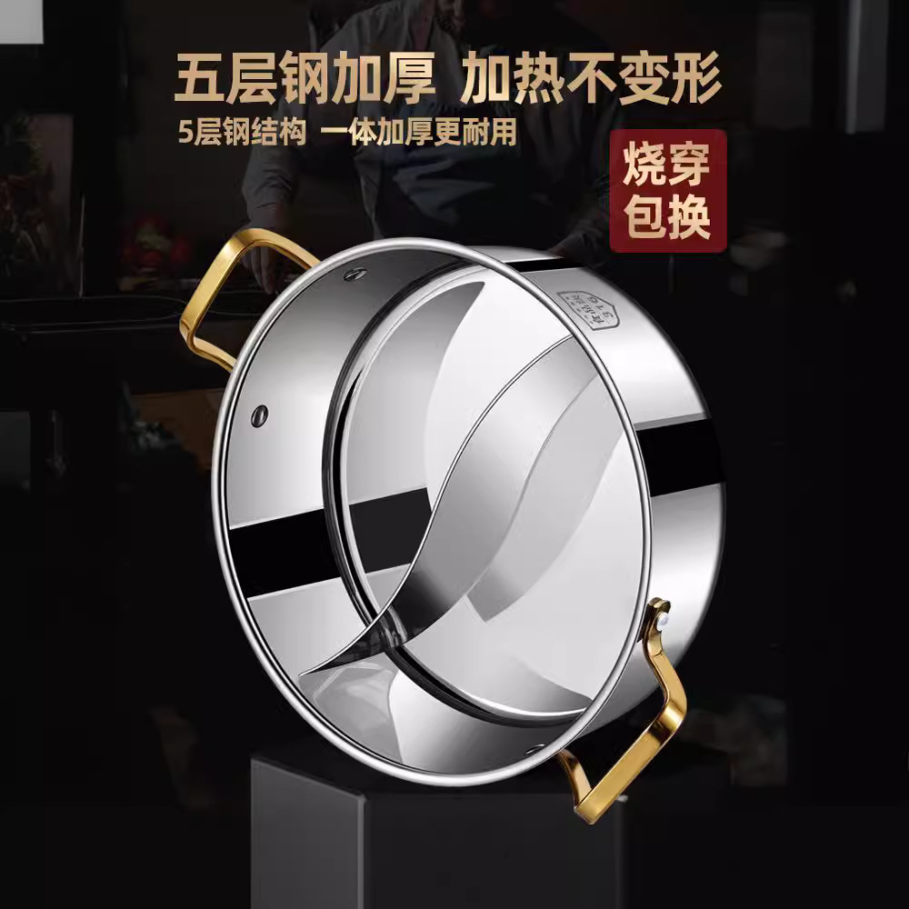 德国火锅鸳鸯锅火锅盆家用清汤锅316不锈钢电磁炉用商用火锅锅具