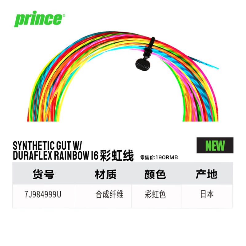 Prince王子网球线彩虹色专业聚酯软线耐打舒适软线SYNgut16