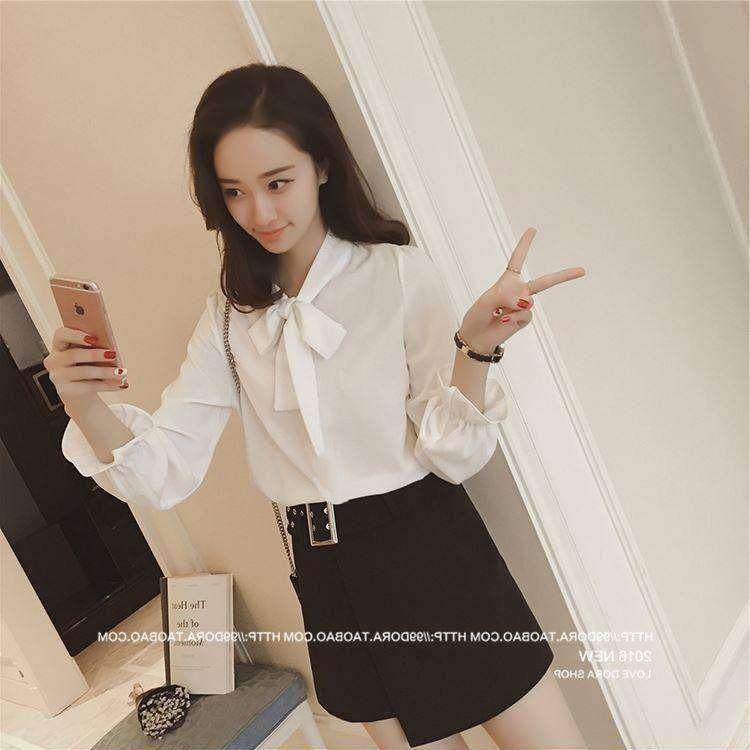 2025年春新款白衬衫韩版百搭宽松显瘦蝴蝶结上衣系带防晒雪纺衬衣
