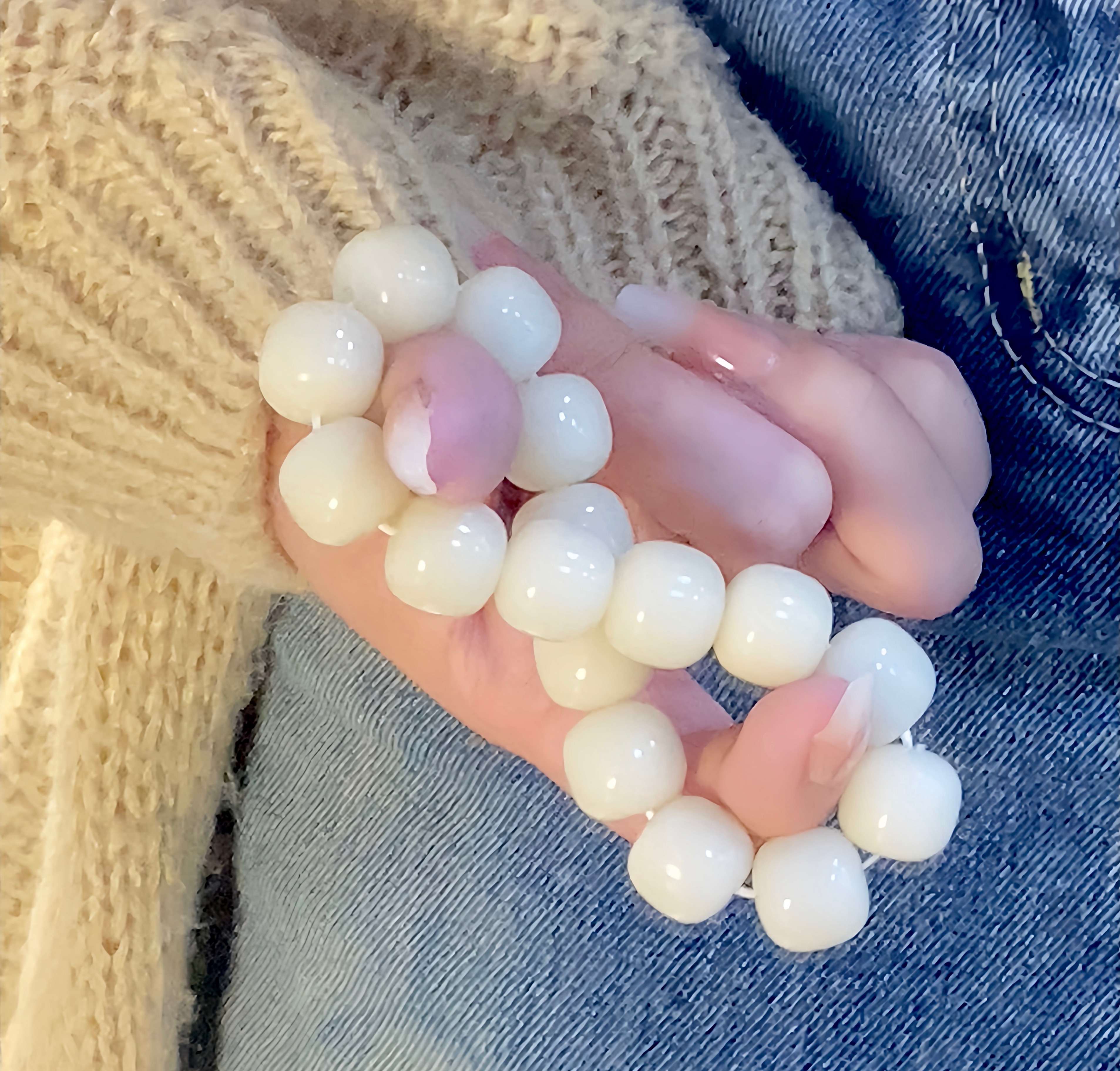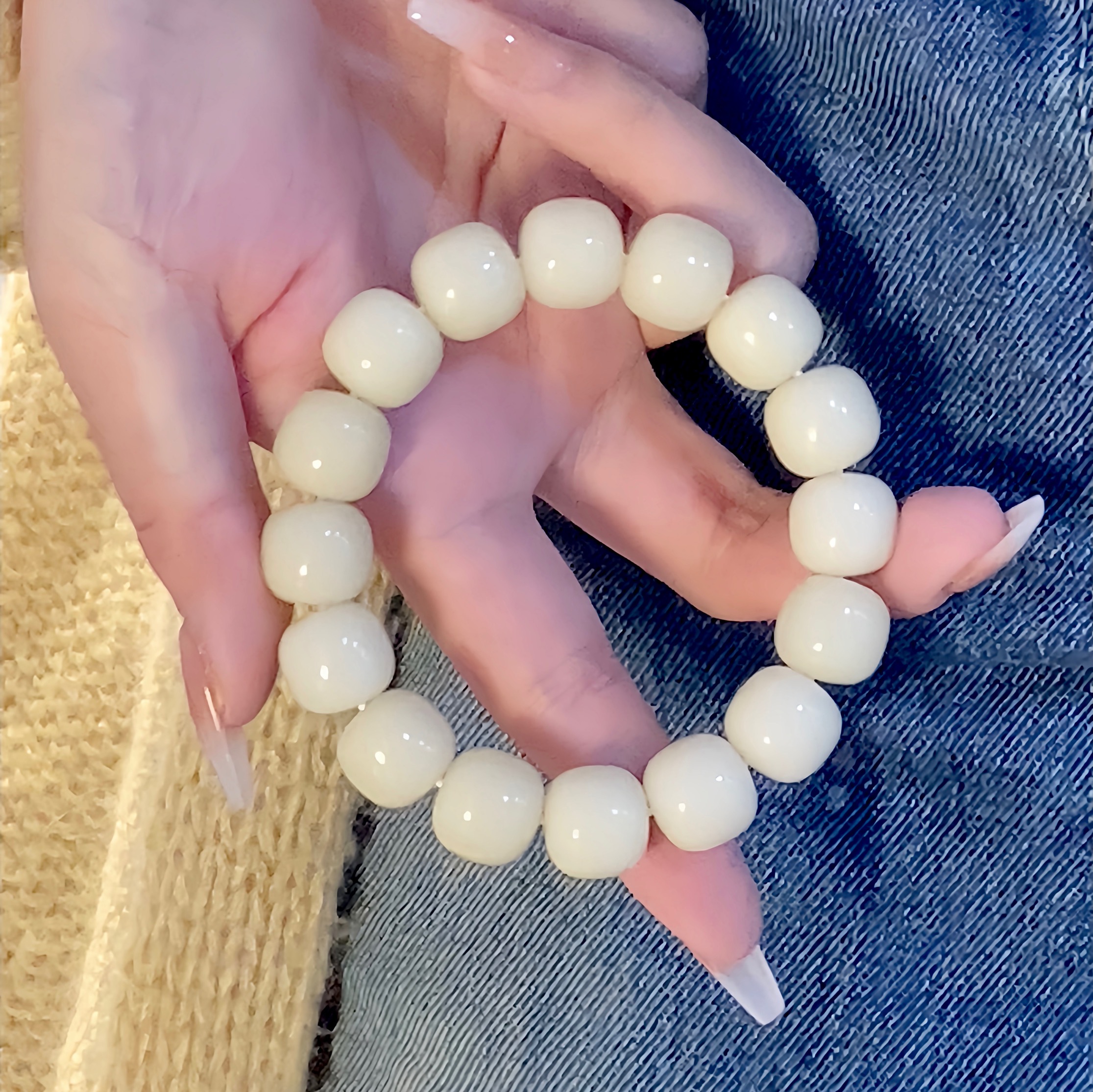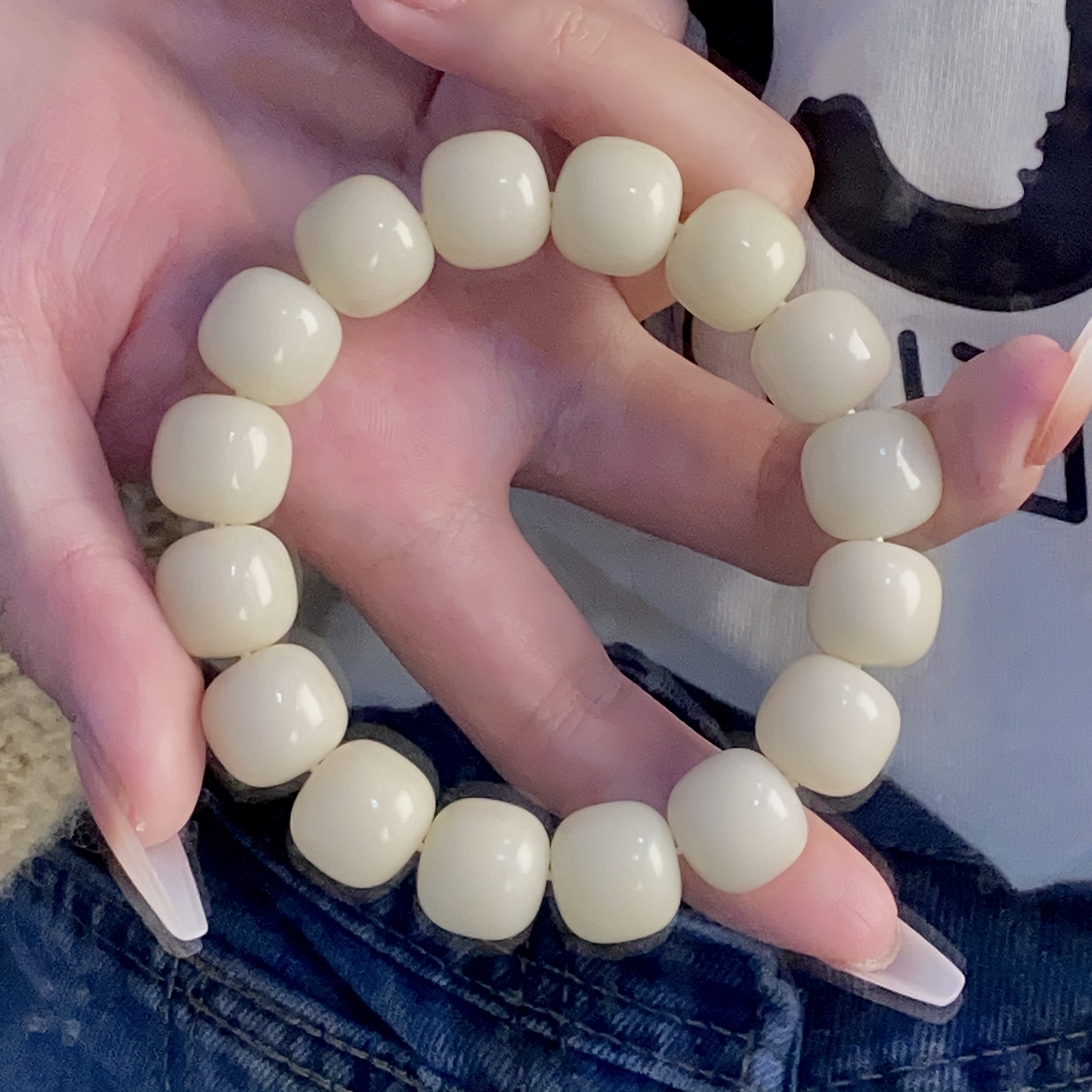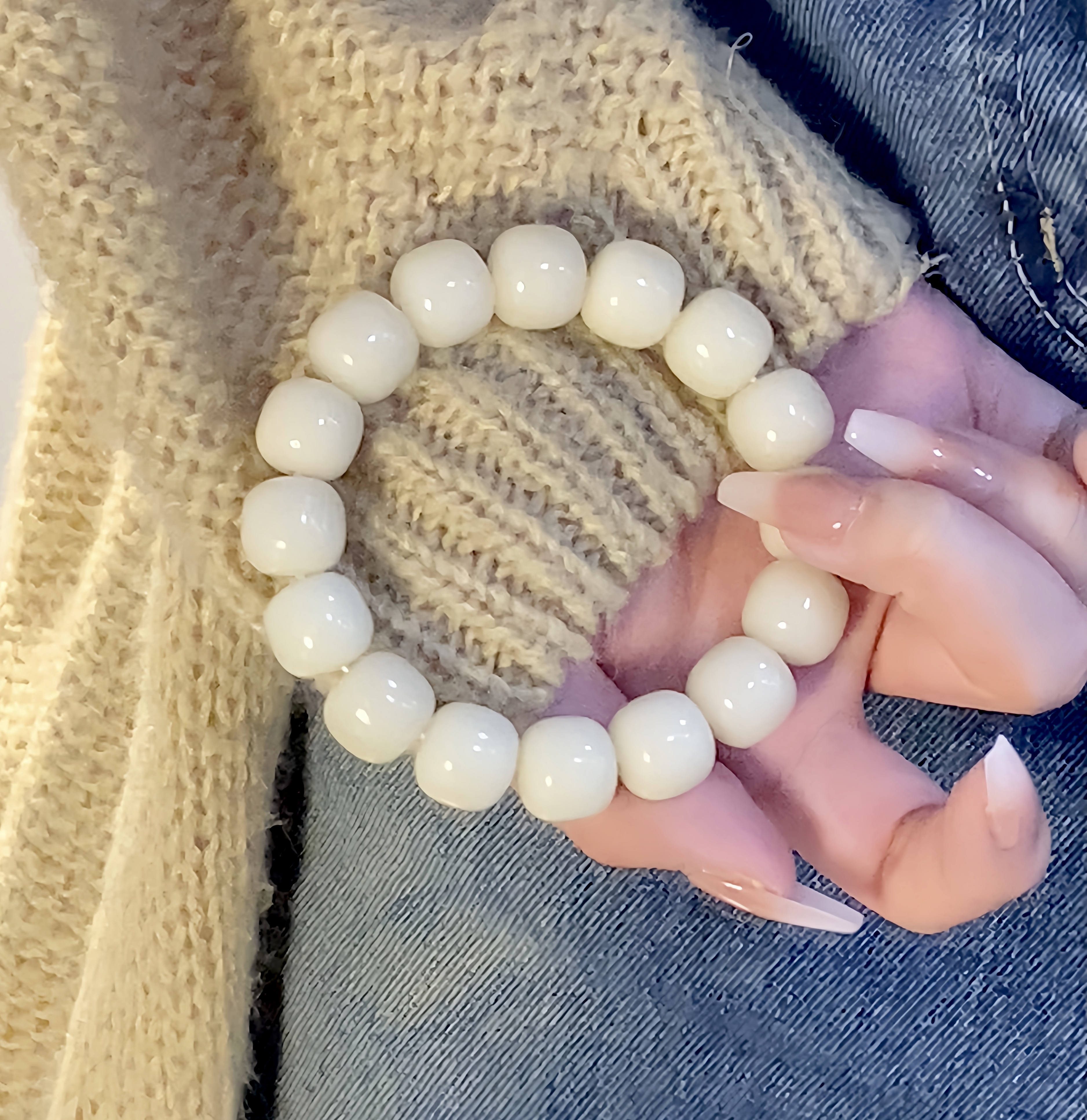 大白兔奶糖白玉菩提根手串女孩绕指柔文玩盘玩变色佛珠手串菩提子