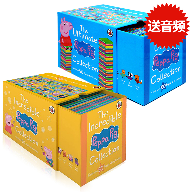 现货小猪佩奇英文原版绘本 英语图画书100本全套 50册蓝盒+50册黄盒 Peppa Pig 绘本儿童英语启蒙故事3-6宝宝早教益智图画书