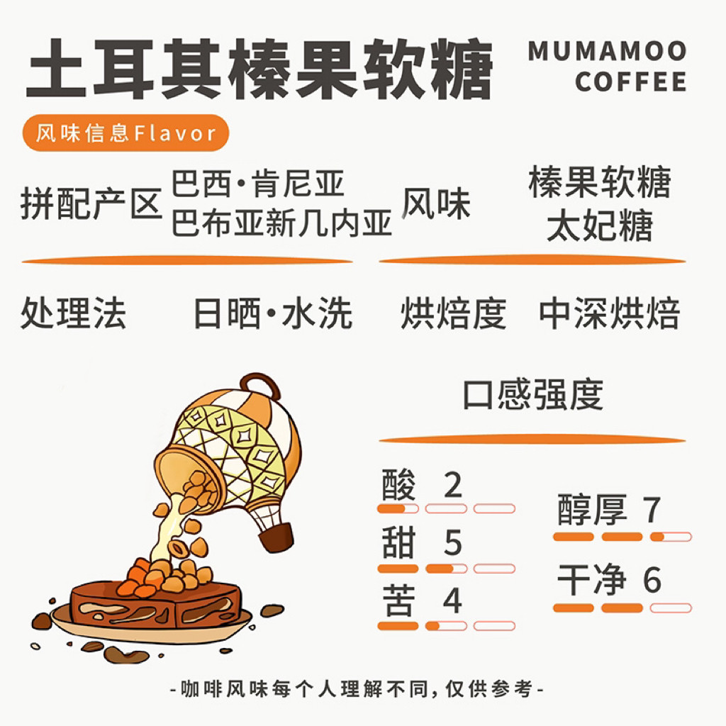牛小咖MUMAMOO土耳其榛果软糖意式浓缩美式拿铁精品咖啡豆粉300g