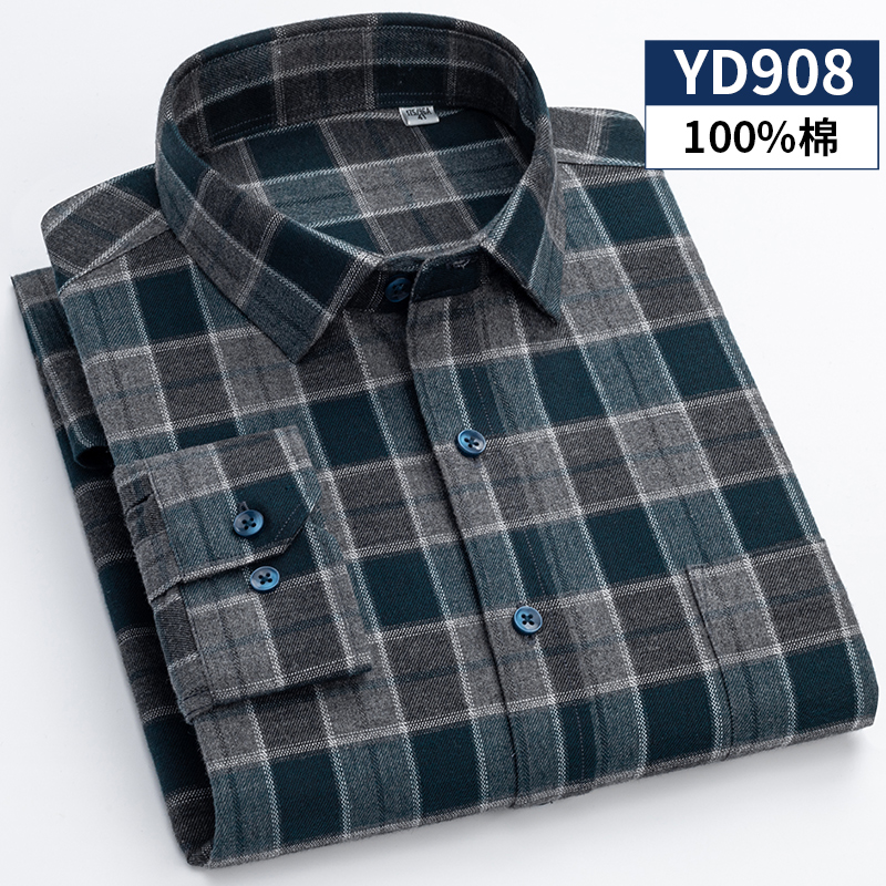 远东秋季纯棉冬季男士衬衫男衬衫男长袖格子衬衣全棉磨毛