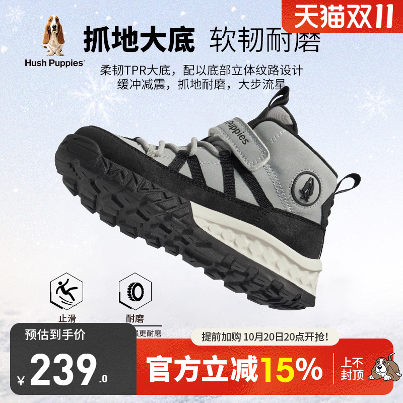 暇步士童鞋儿童棉靴冬季加绒保暖软底中大童男童棉鞋二棉毛毛鞋子