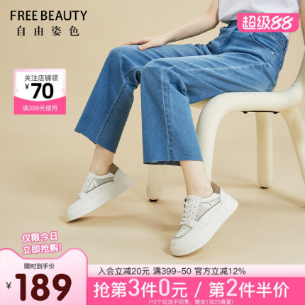 自由姿色休闲厚底圆头小白鞋