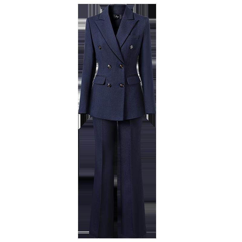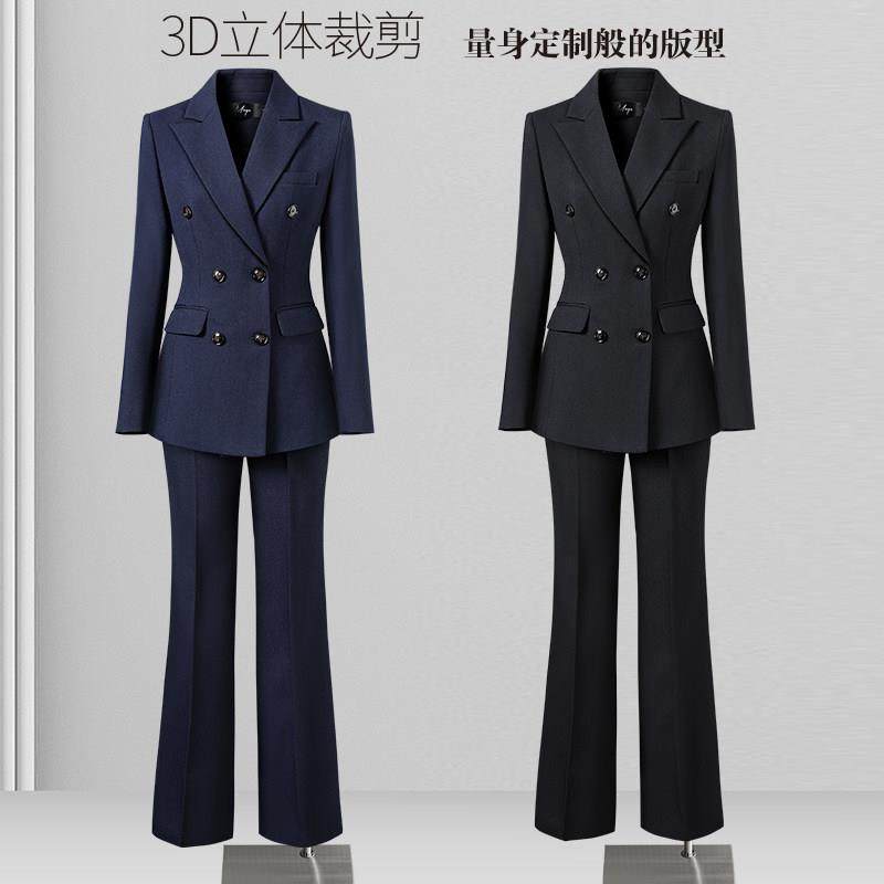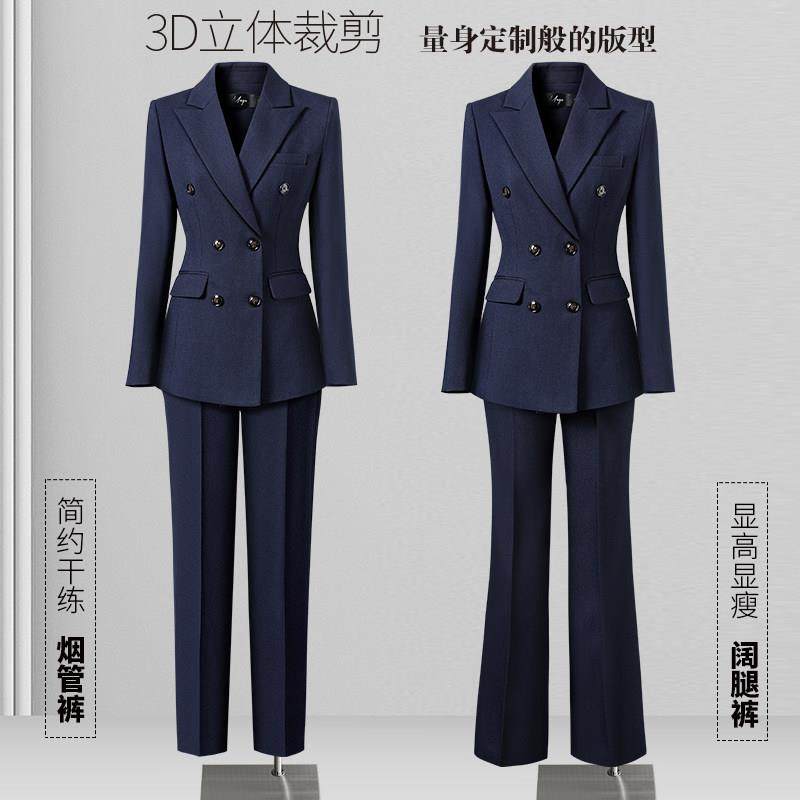 双排扣西装套装女阔腿裤高级感女神范面试正装4S店销售职业工作服