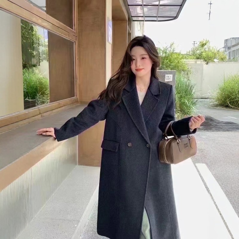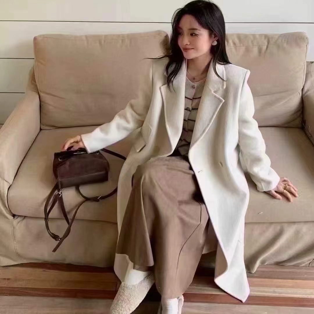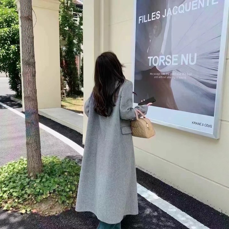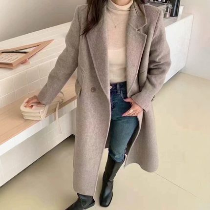 2025新款双面羊绒大衣女中长款过膝系带西装领宽松显瘦羊毛呢外套