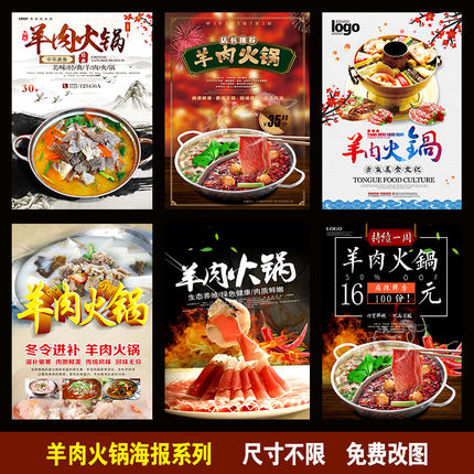 羊肉火锅 牛肉火锅 狗肉火锅 羊蝎子 羊牛杂 猪肚鸡 餐厅贴画海报