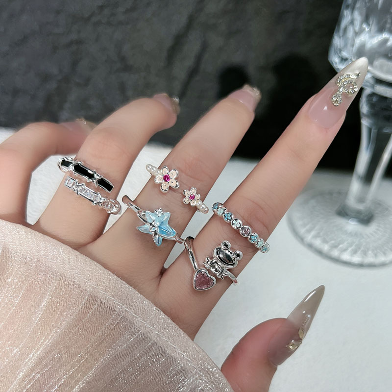 小众饰言个性创意青蛙海星花朵时尚戒指女轻奢欧美风甜酷百搭指环