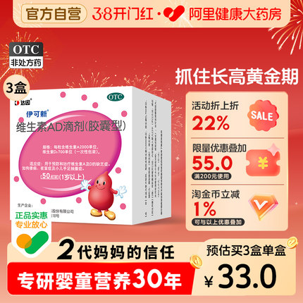 3盒】达因伊可新维生素ad滴剂婴幼儿伊可新维ad维生素d3官方旗舰