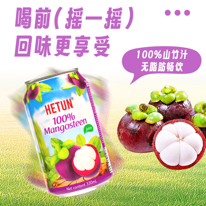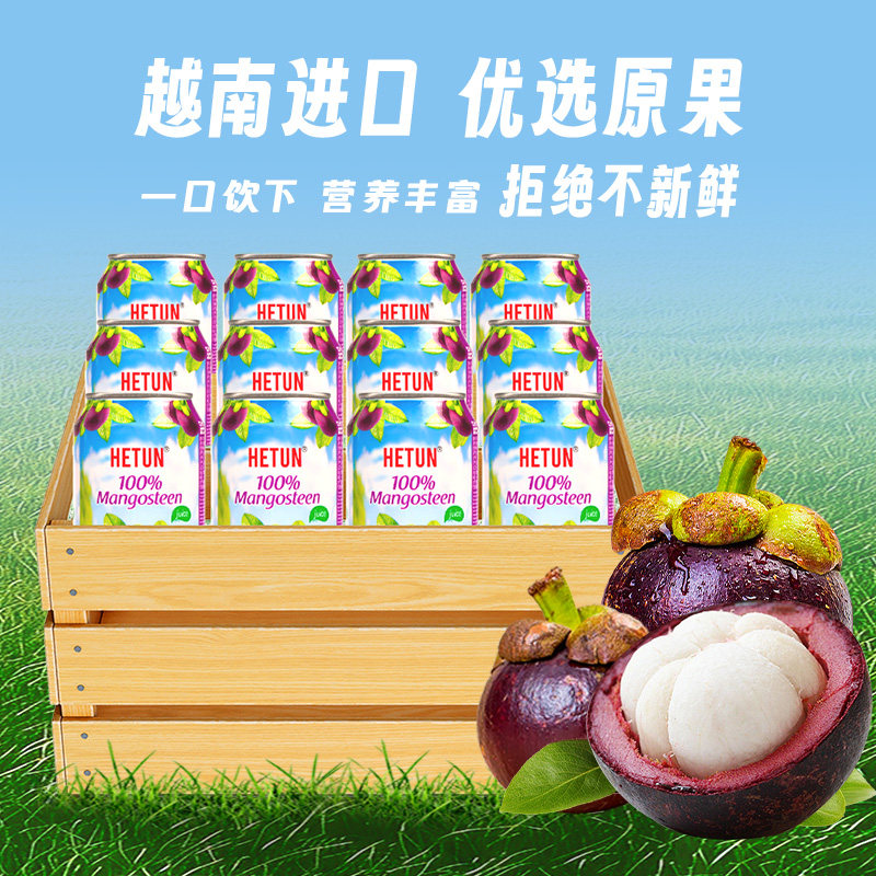 【越南进口】HETUN山竹汁NFC非浓缩100%果汁饮料330ml*12罐