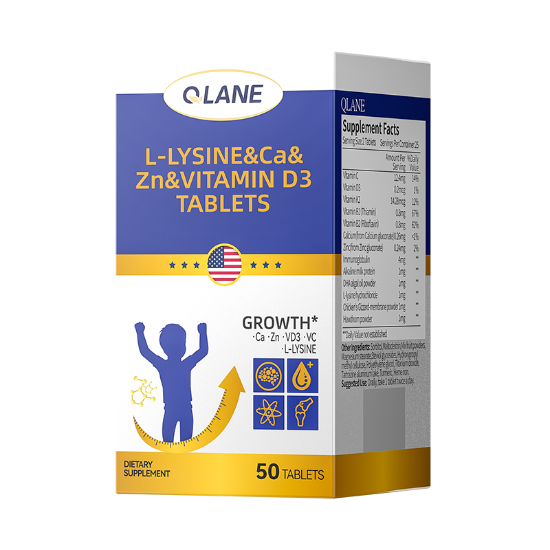 Qlane成长片赖氨酸青少年儿童学生维生素D3K2钙铁锌镁100%进口