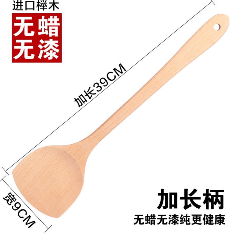 39CM加长防烫 不粘锅专用锅铲木炒菜木柄护锅铲长柄无漆木头木铲