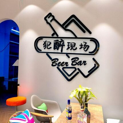 啤酒馆墙贴饭店墙面布置装饰酒吧网红立体3d亚克力背景文化墙纸贴