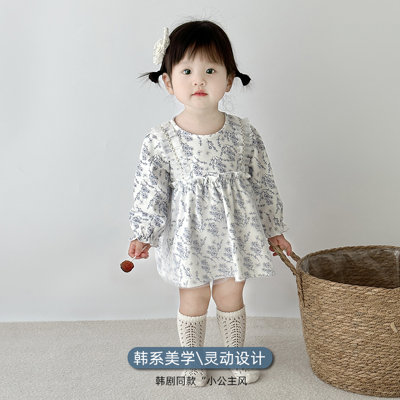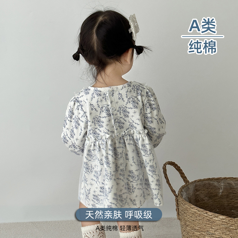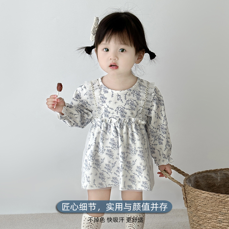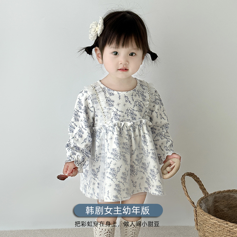 女宝宝连衣裙春装纯棉长袖小月龄婴儿公主裙甜美可爱碎花裙子秋季