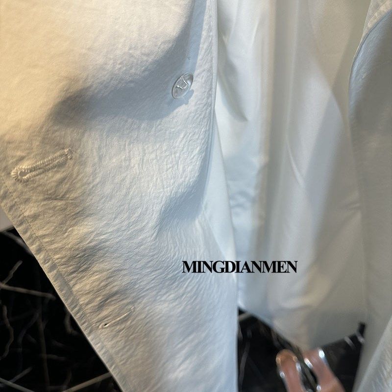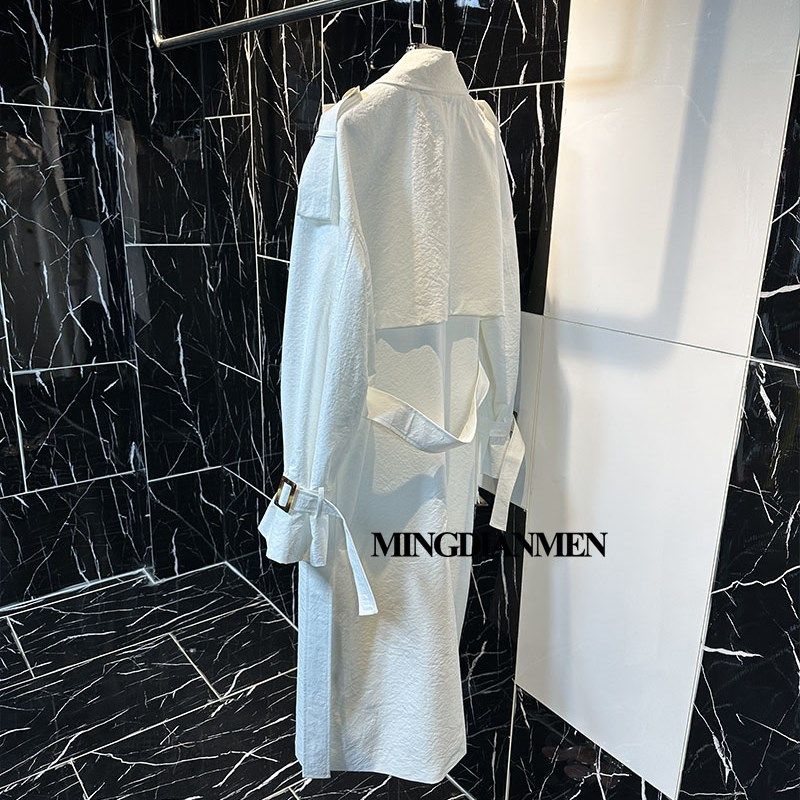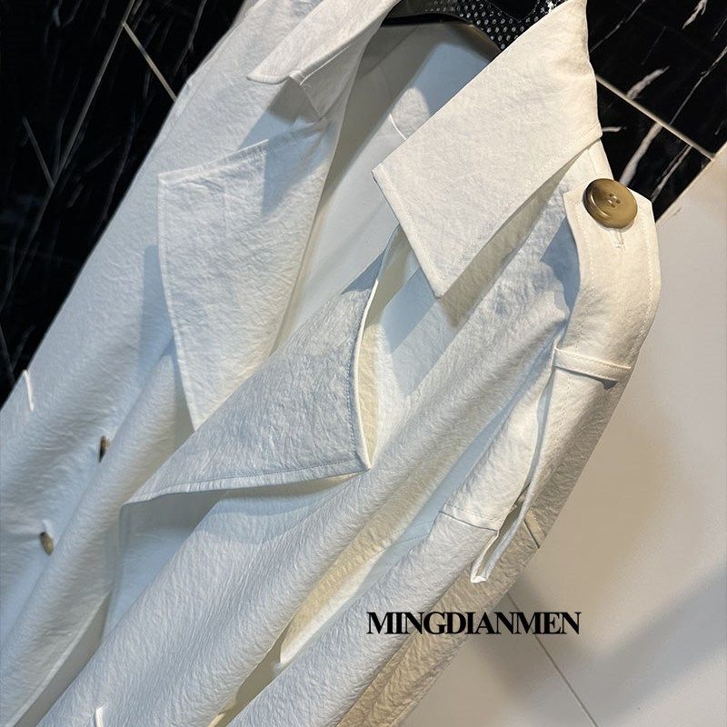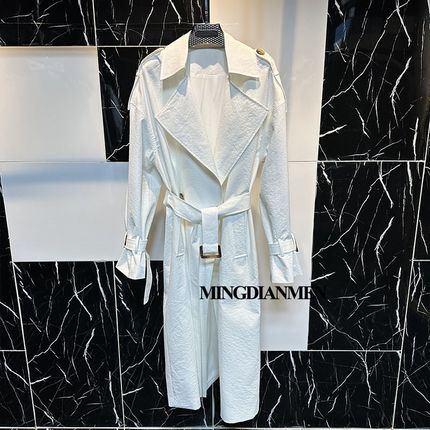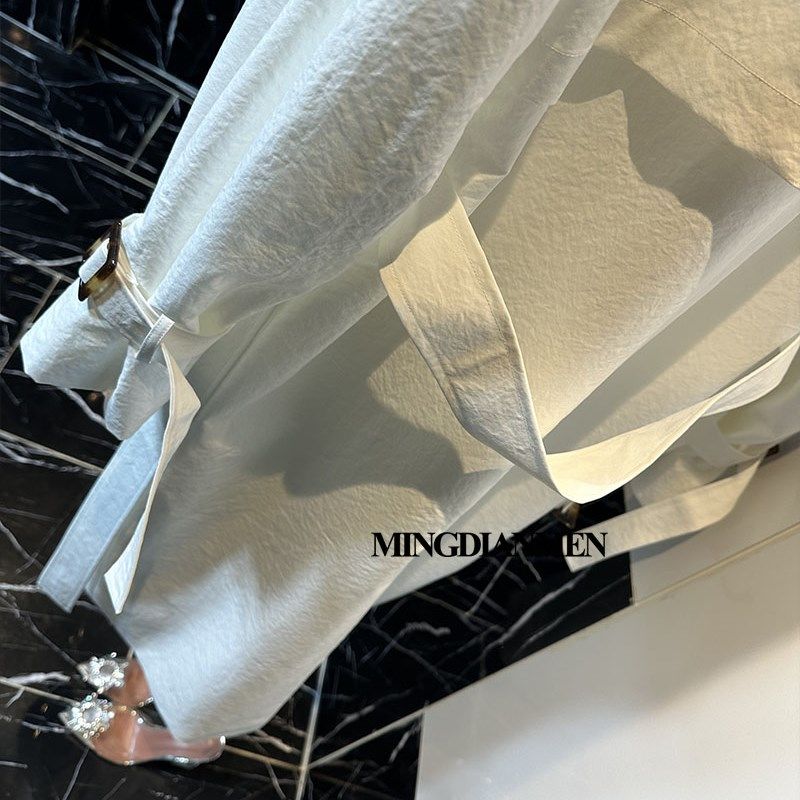 白色修身中长款翻领气质风衣收腰显瘦过膝休闲外套2024春秋女装