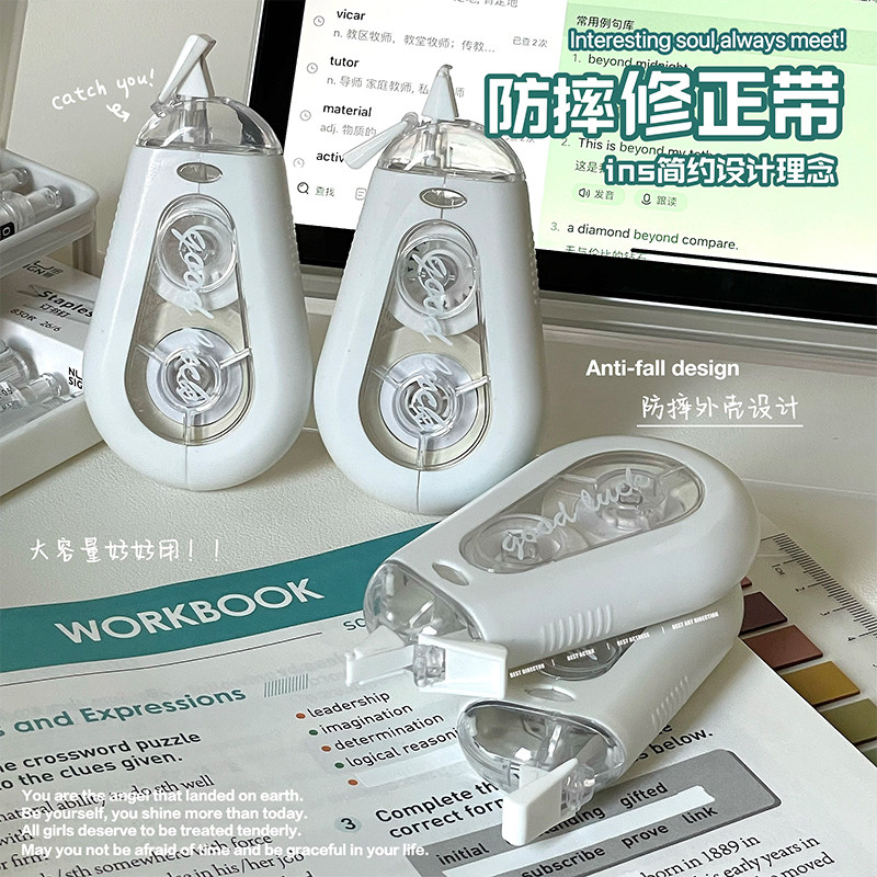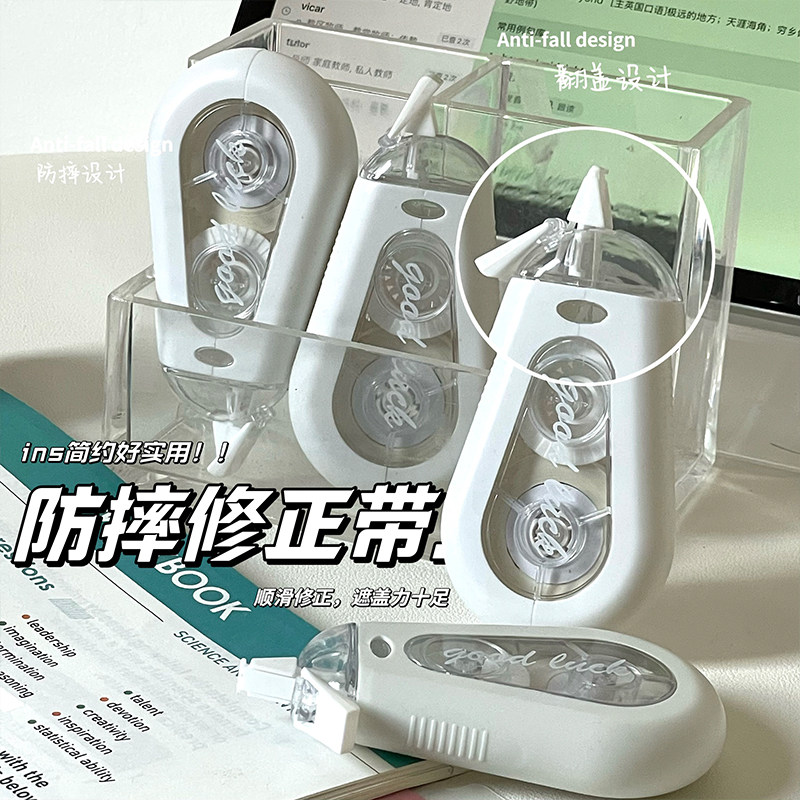高校推荐学生专用防摔修正带静音大容量涂改带高颜值渐变白色改错带初中高中生考试刷题必备文具顺滑