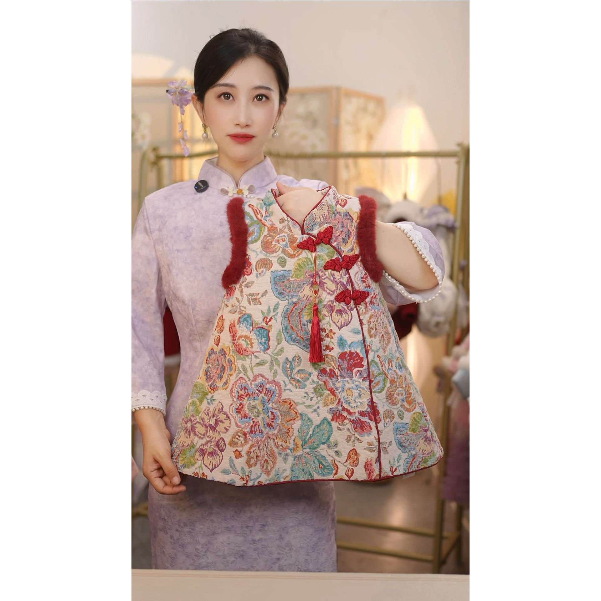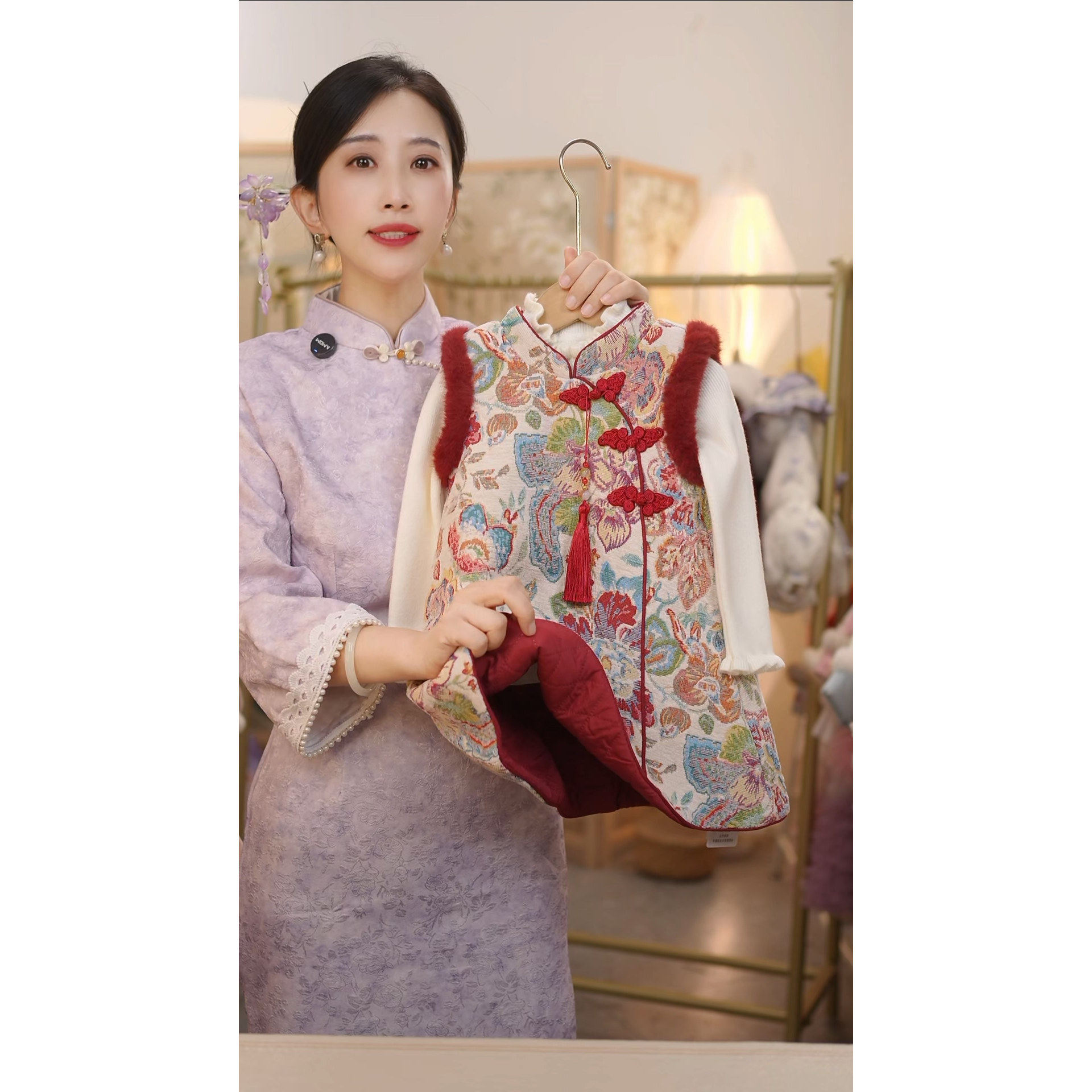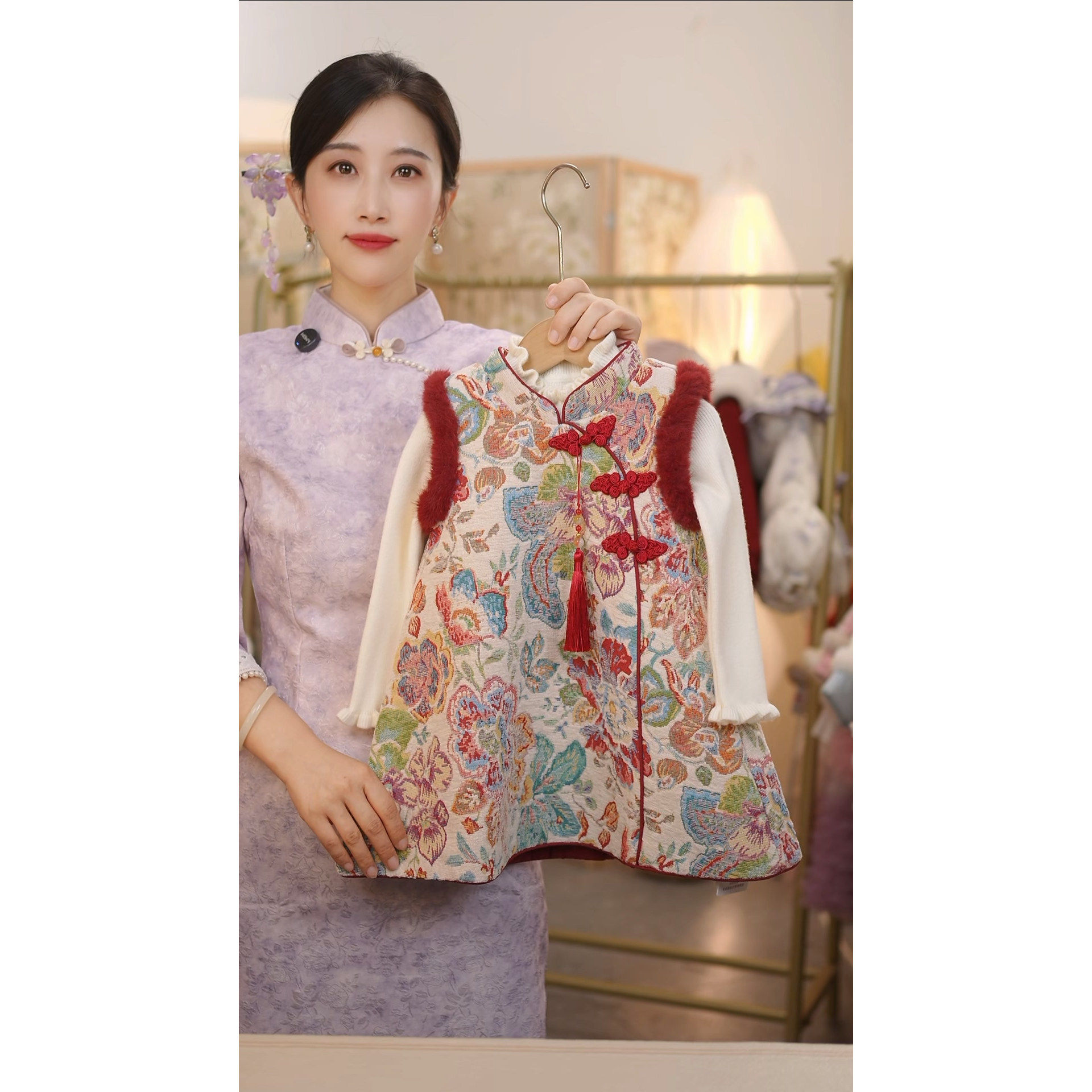 现货【花开富贵】SC662女童冬季毛衣马甲旗袍裙国风套装拜年服