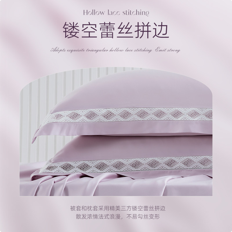 梦洁家纺100S长绒棉床上四件套纯棉全棉贡缎蕾丝套件高档床上用品