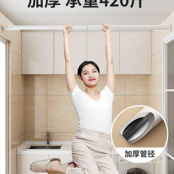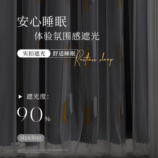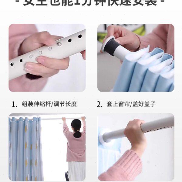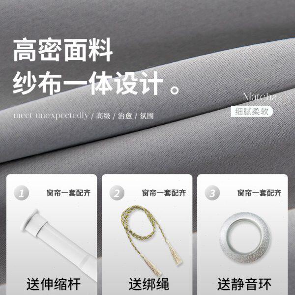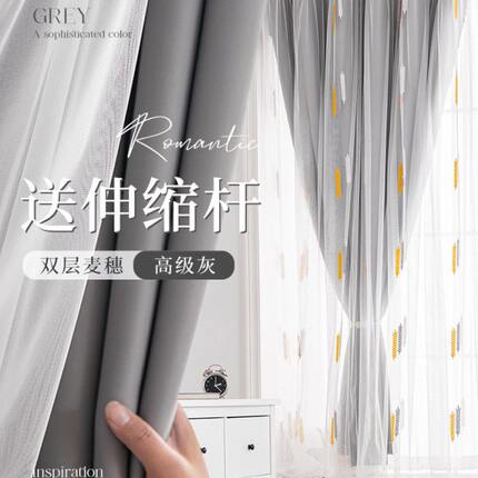 窗帘窗帘杆一整台伸缩杆全套免打孔安装卧室遮光飘窗双层带纱新款