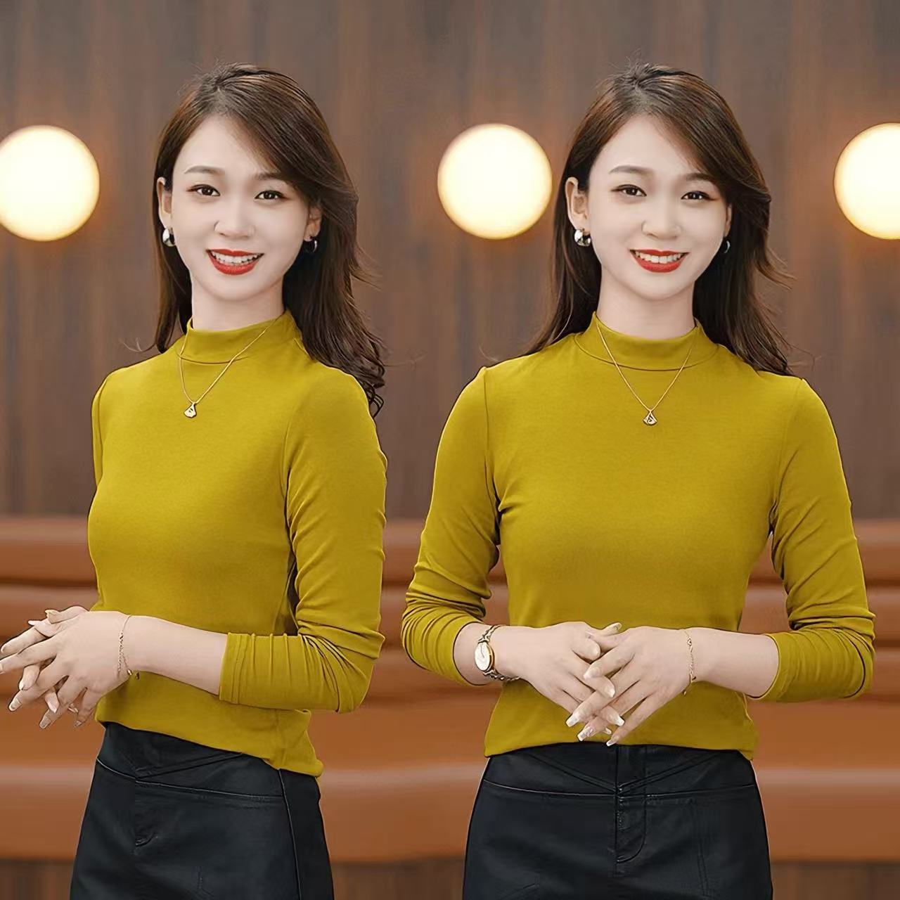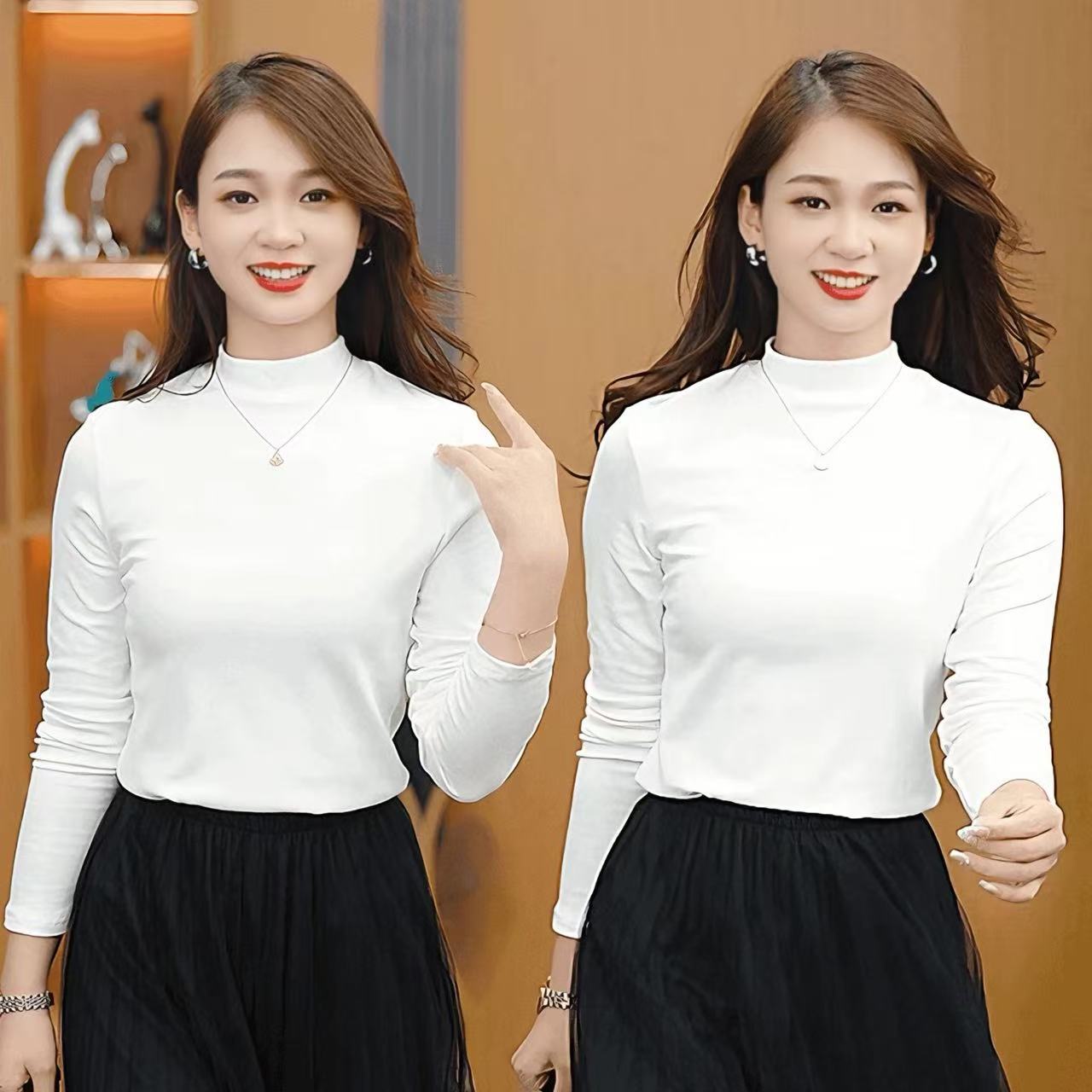 秋冬半高领打底衫女德绒纯色长袖T恤内搭修身白色秋衣大码上衣