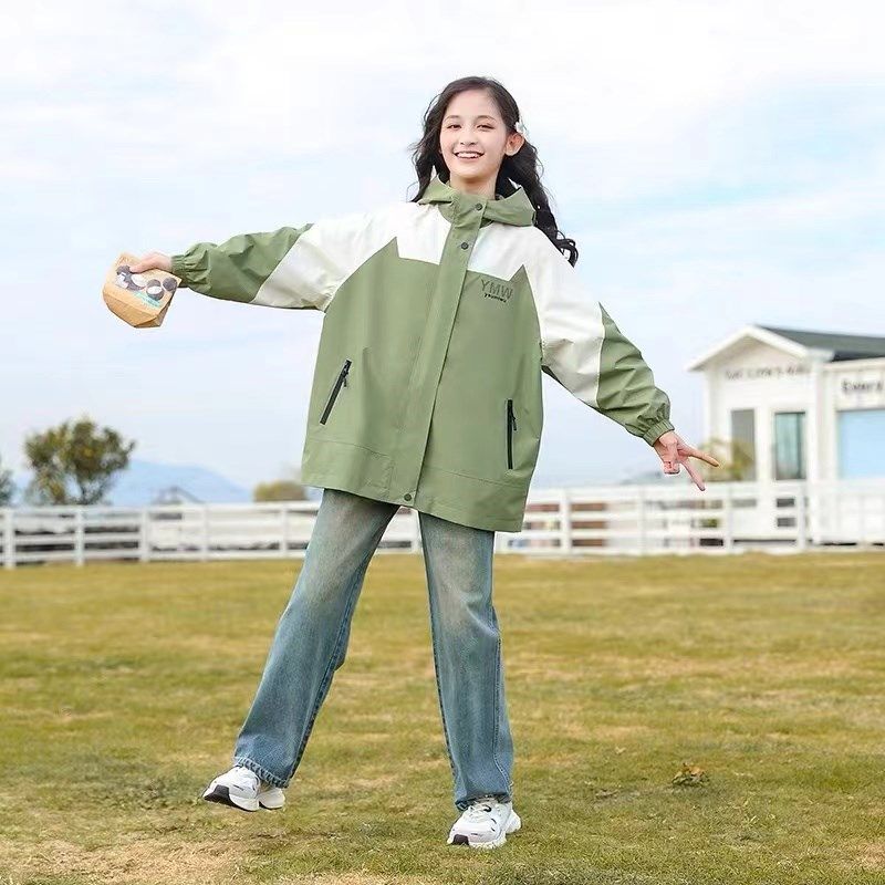 女童外套春秋款连帽洋气2024新款中大童宽松上衣薄款女孩风衣春装