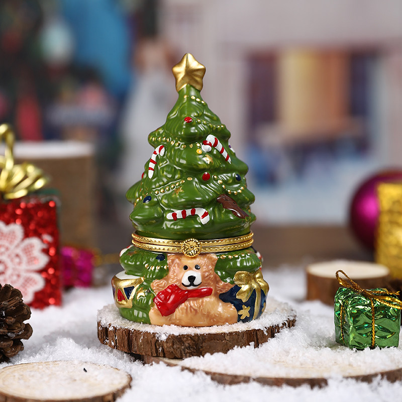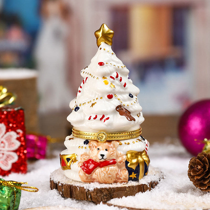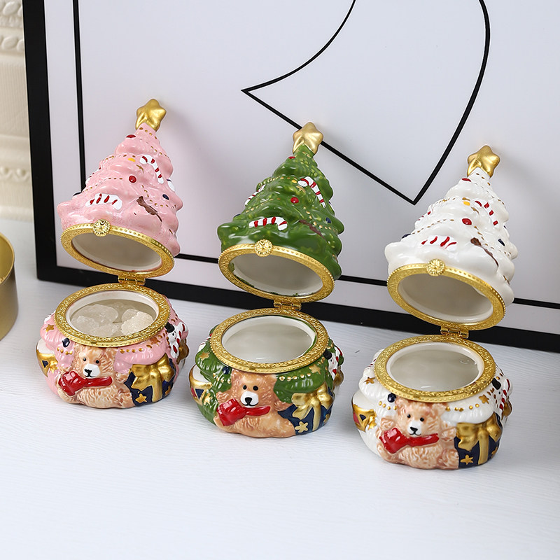 圣诞小熊首饰盒陶瓷珠宝收纳盒香薰礼盒高级感生日许愿树陶瓷摆件