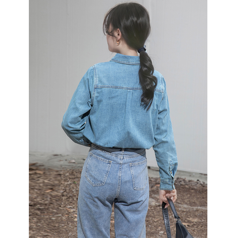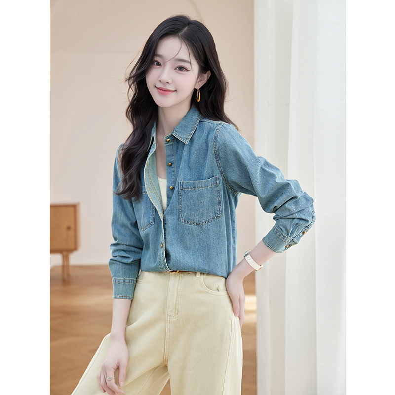 复古软牛仔衬衫女款春秋季2025新款休闲时尚港风叠穿打底衬衣上衣