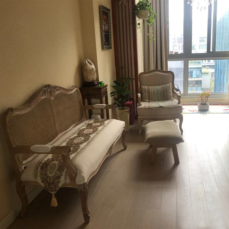 美式乡村实木雕花法式藤编金色做旧双人三人沙发影楼摄影民宿沙发
