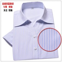 白底蓝条纹女士衬衫银行工作服夏季短袖通勤工装V领修身半袖衬衣